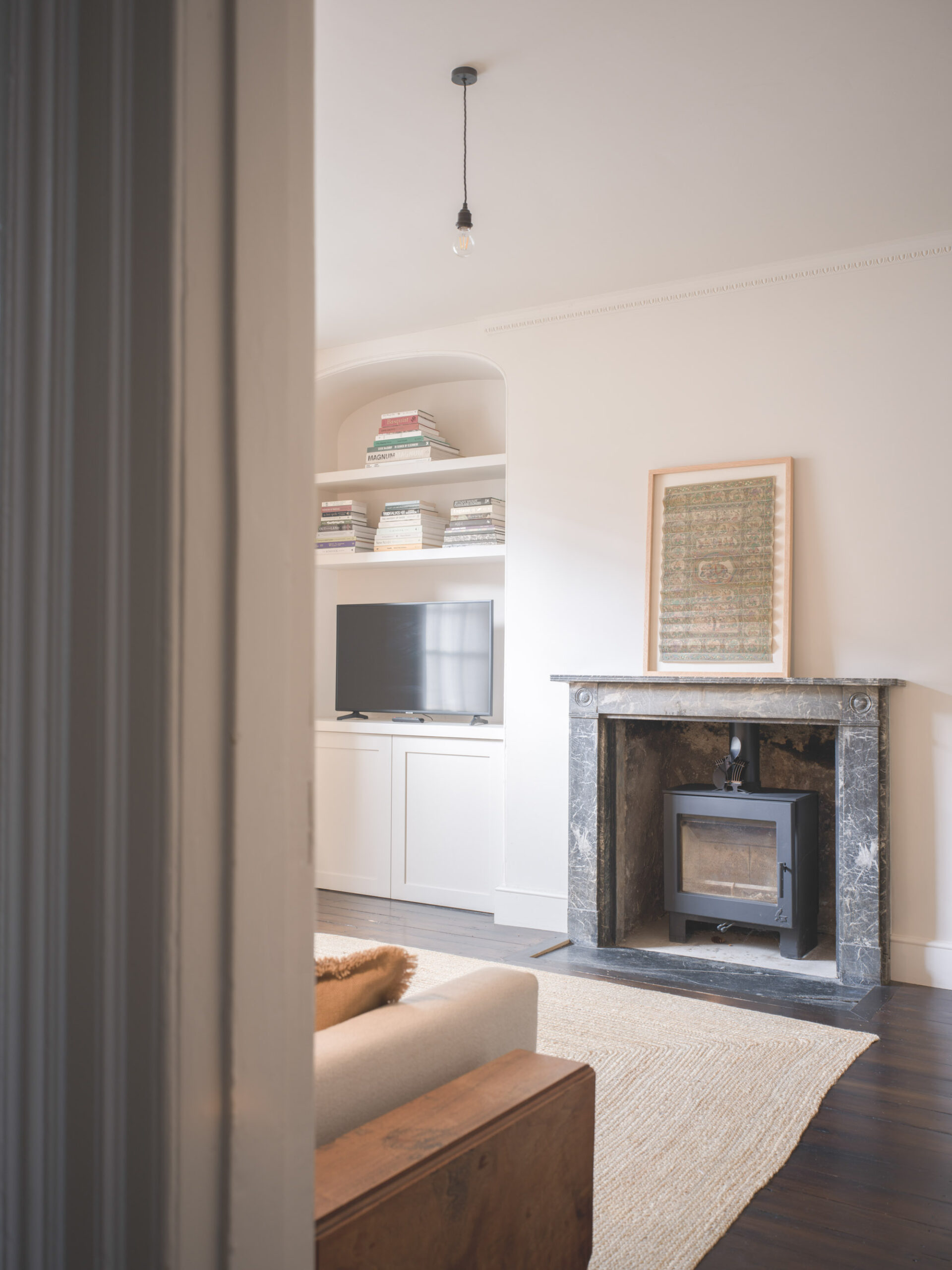 “The black chair with Japanese detail was my mum’s when she was in her early 30s; I’ve always loved it and feel comforted that it is now in our home.” Owners Hannah and Tom