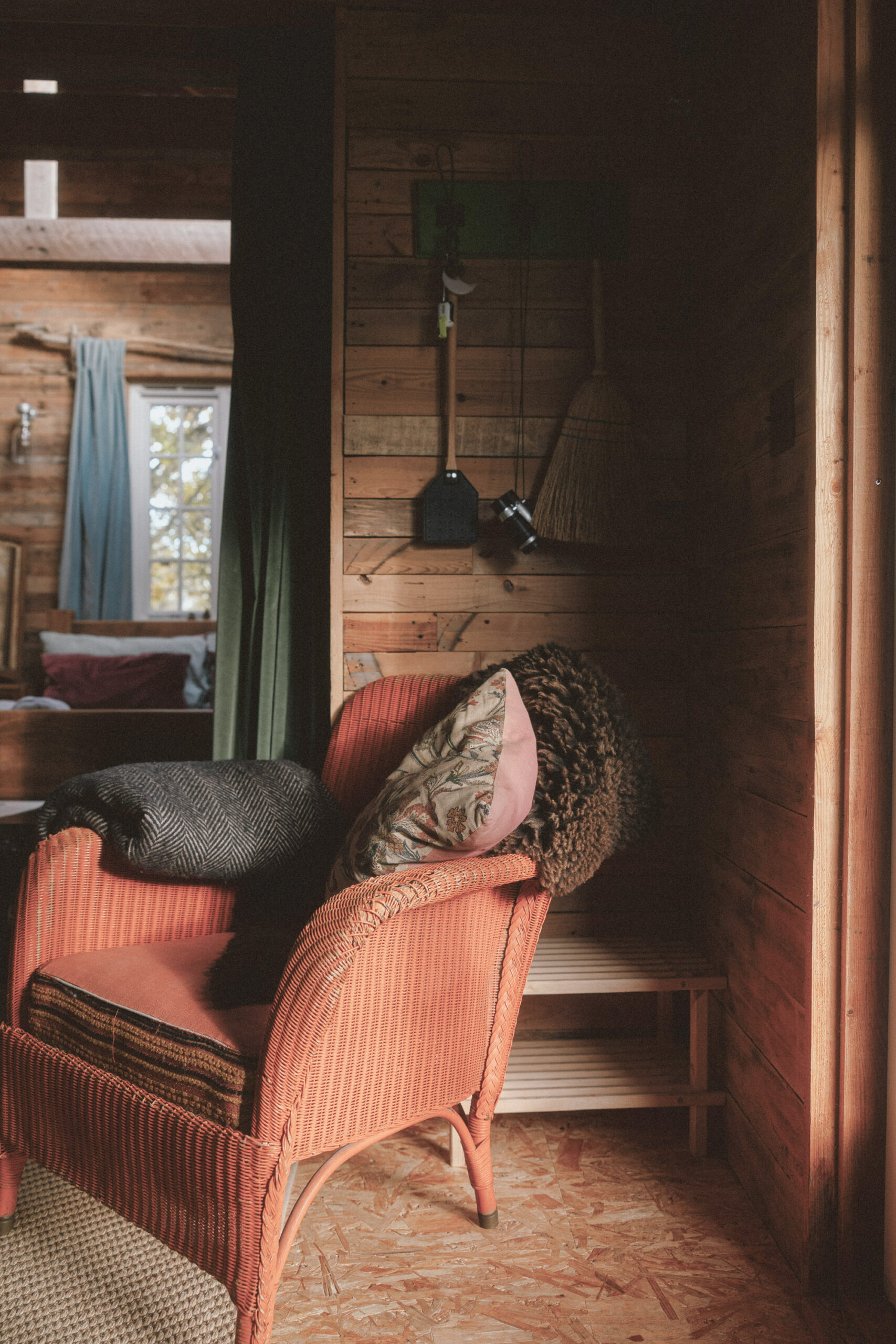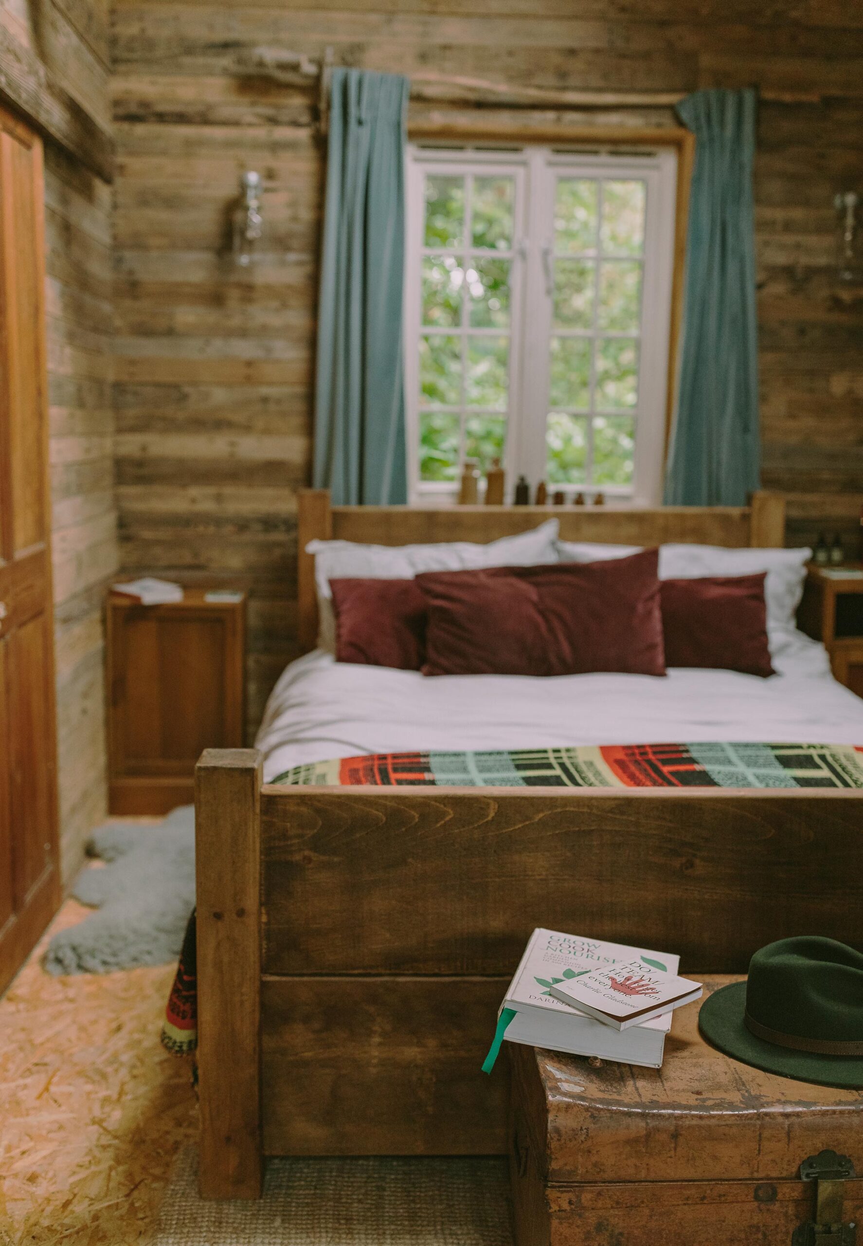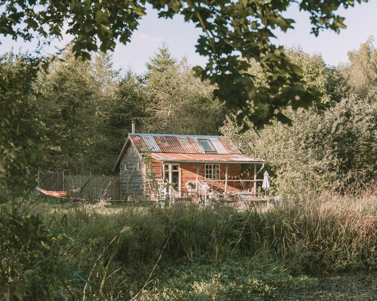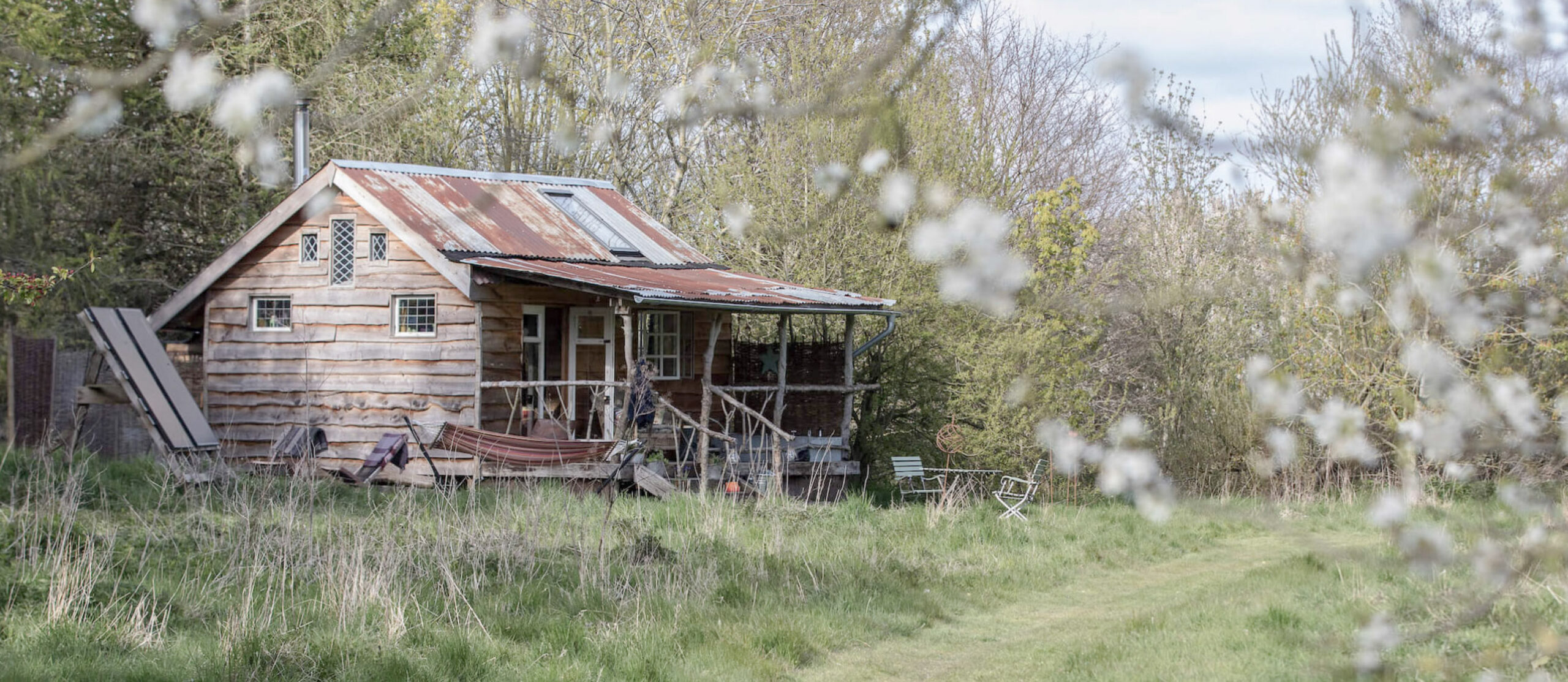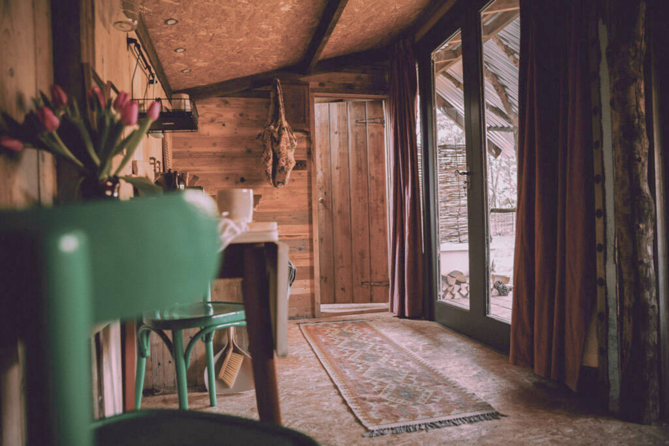 The entire site has been rewilded, and the off-grid cabins sit amongst 6 acres of wildflower meadows. They are built from offcuts and upcycled materials, including old refrigerated lorry bodies! Furnishings are largely vintage or upcycled, and electricity is solar powered.
