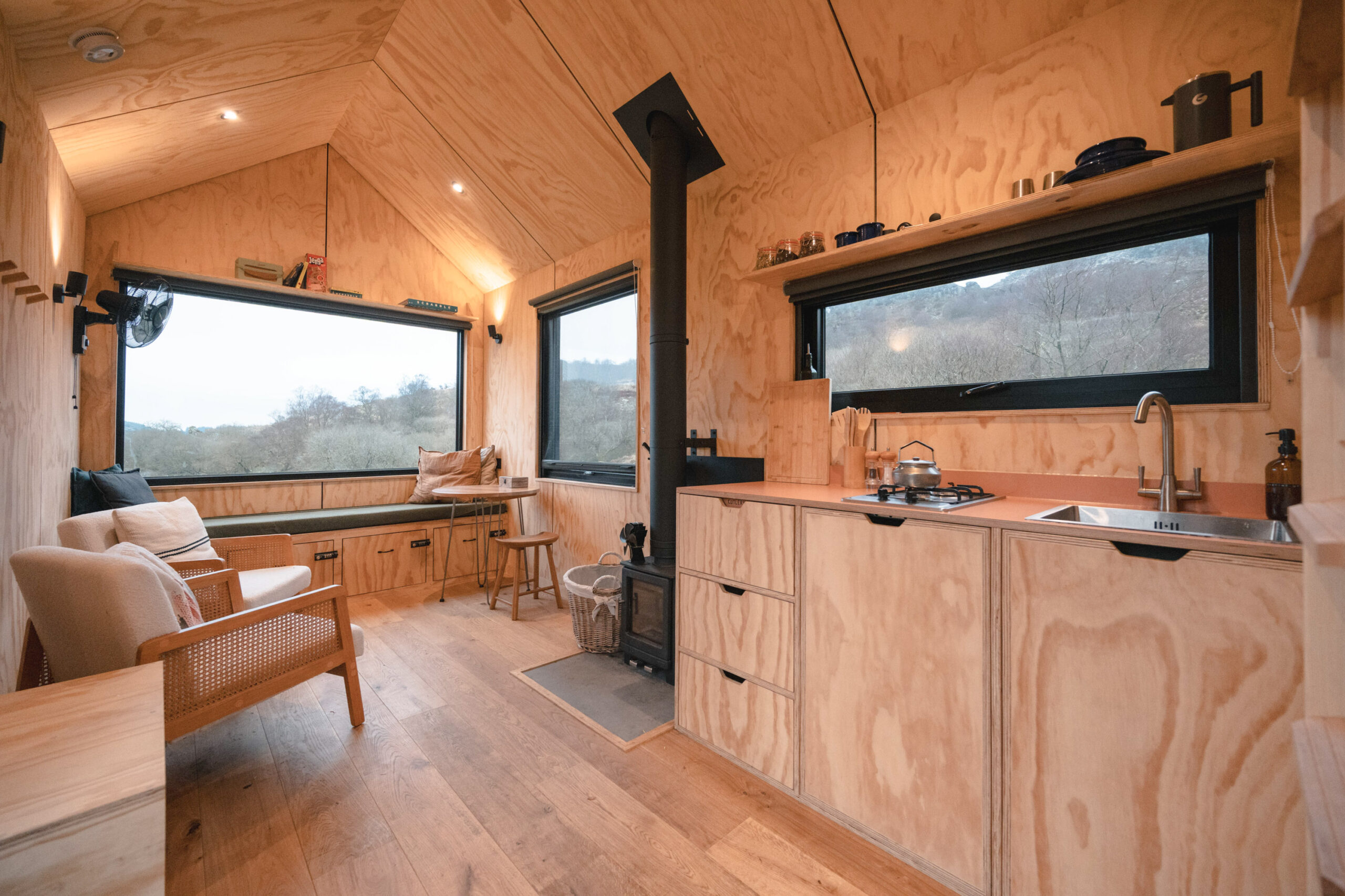 It all started a few years ago. Harry and George had always had a keen interest in building and constructing things — initially, it was treehouses, speakers and furniture, then they built their first cabin on Harry’s family farm. For a small structure, it was a little more complex than you might think. With composting loos, solar power, kitchen, bathroom and bedroom all integrated into a small space, the process threw up all sorts of challenges. Though it was stressful, they were delighted to create such a unique holiday experience with such a low carbon impact, and went on to create more. Their aim is to unlock amazing places for holiday makers all over the UK.
