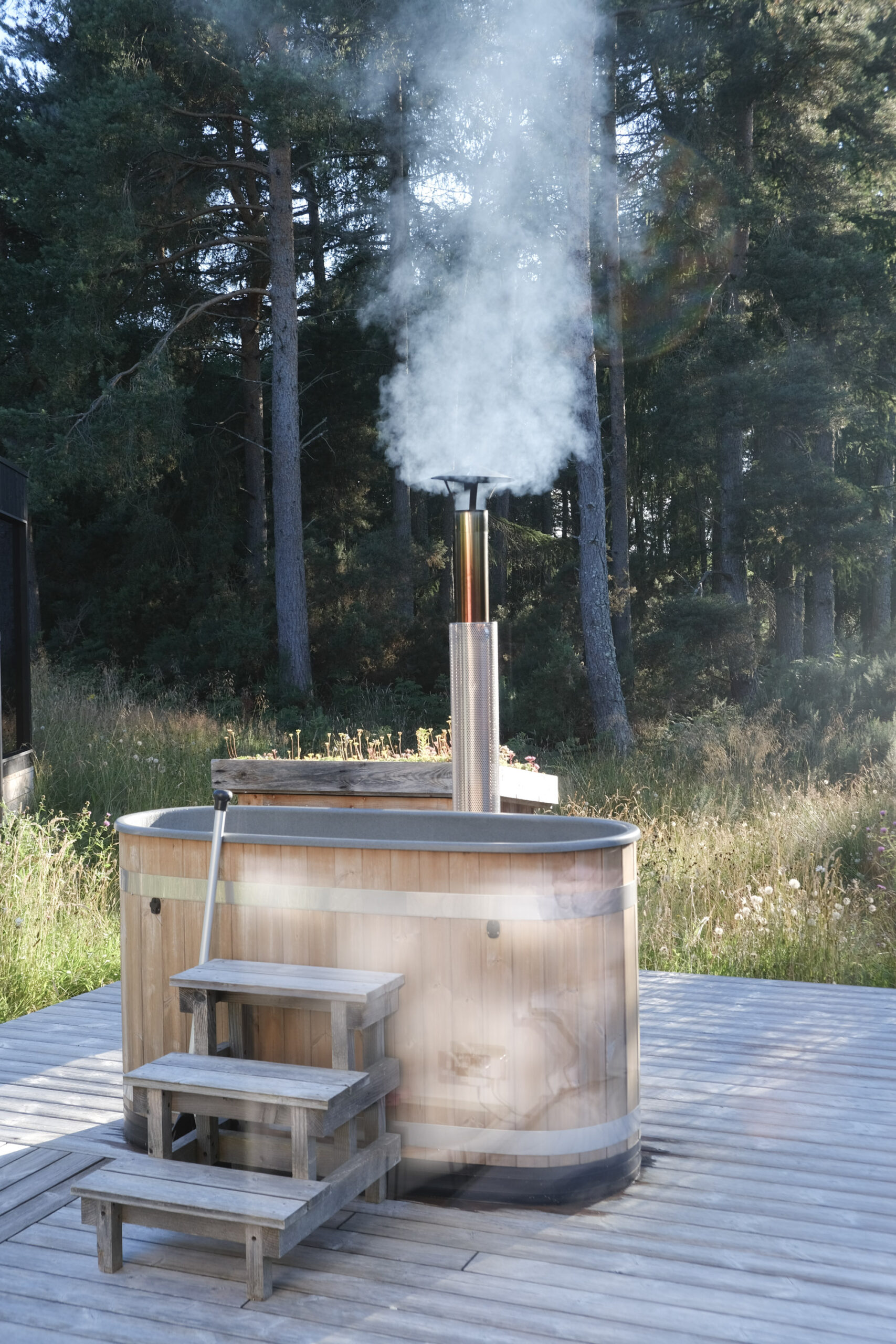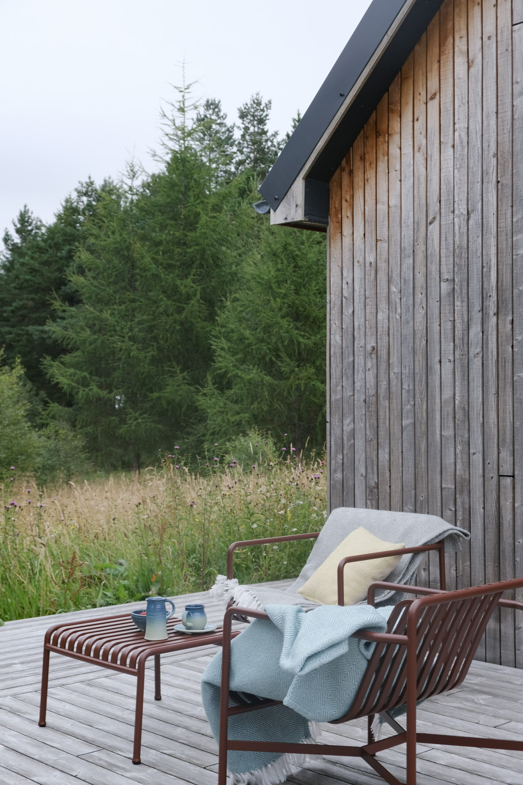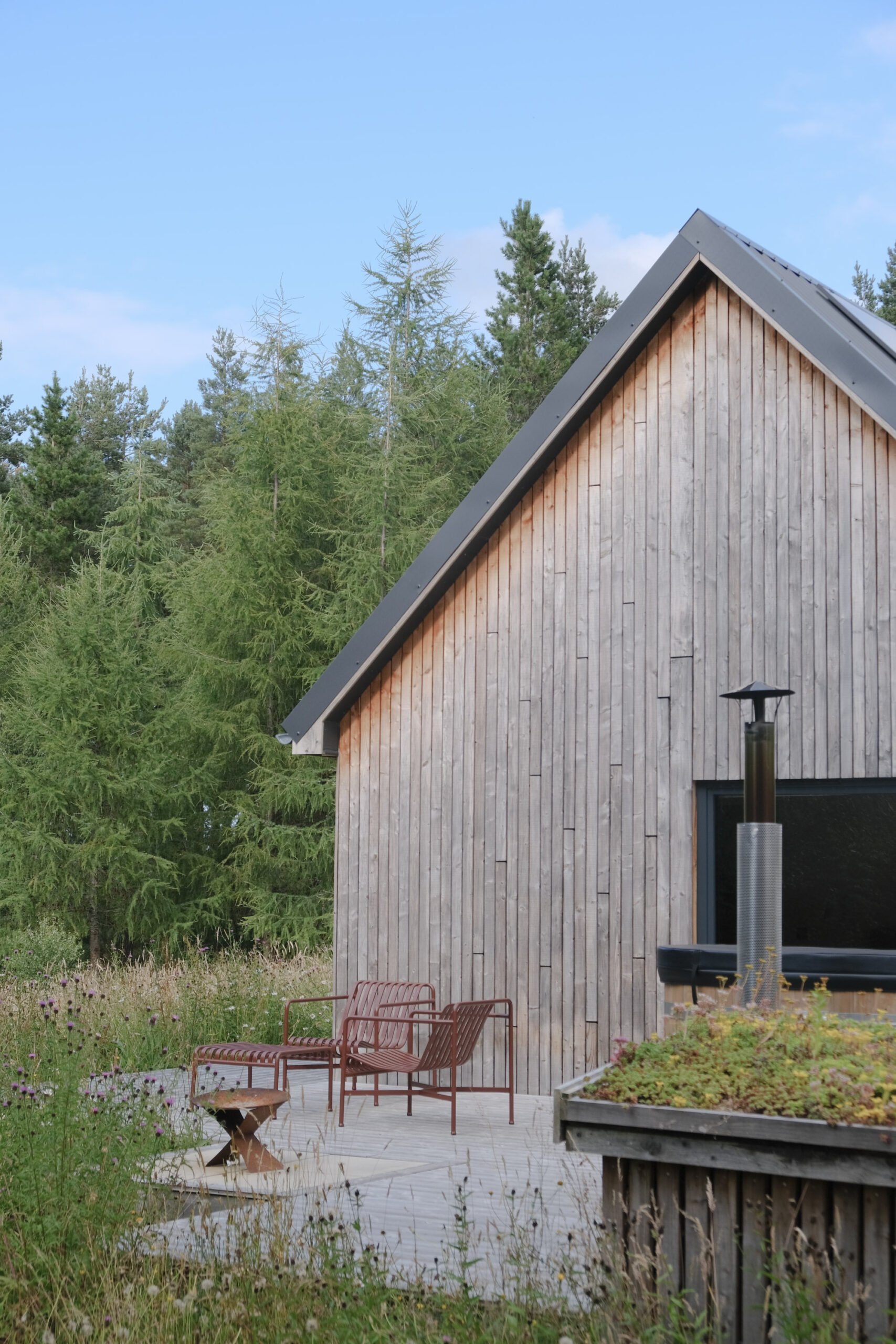 “Phil and I moved to Moray after visiting it on holiday and feeling like it was an undiscovered gem. One of the sunniest and driest parts of the UK and not too badly affected by the dreaded Scottish midges! I’ve always been inspired by the lodges of Namibia and Botswana and their connection to the wilderness, and wanted to create something similar for guests here: a simple building offering indoor/outdoor living in a natural landscape. We have triple glazing rather than canvas sides but the idea is the same. We have a total of 6.5 acres here, and have so far planted 2,000 trees, established hedgerows, sown areas of wildflower meadow and created a large wildlife pond. This is somewhere for couples or single people to spend time in nature; somewhere to switch off a busy mind and slow down.” Owners, Allie and Phil
