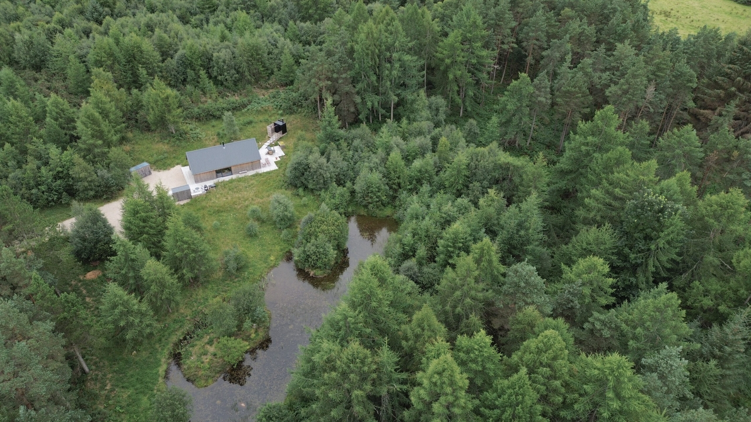 Green tourism gold! The cabin was constructed with Scottish larch cladding, local wood flooring and sheeps’ wool insulation. Solar PV panels provide hot water and mean the cabin can be off-grid in a power cut (there’s also a Powerwall back up) and all energy use in the summer months is generally renewable. There’s a private water supply and Biorock waste water treatment so all water used is cleaned and returned to the woodland. In addition to creating the large wildlife pond, the owners have also planted 2,000 trees and 100m of native hedgerow over the last 10 years, and created areas of wildflower meadows all around the cabin.