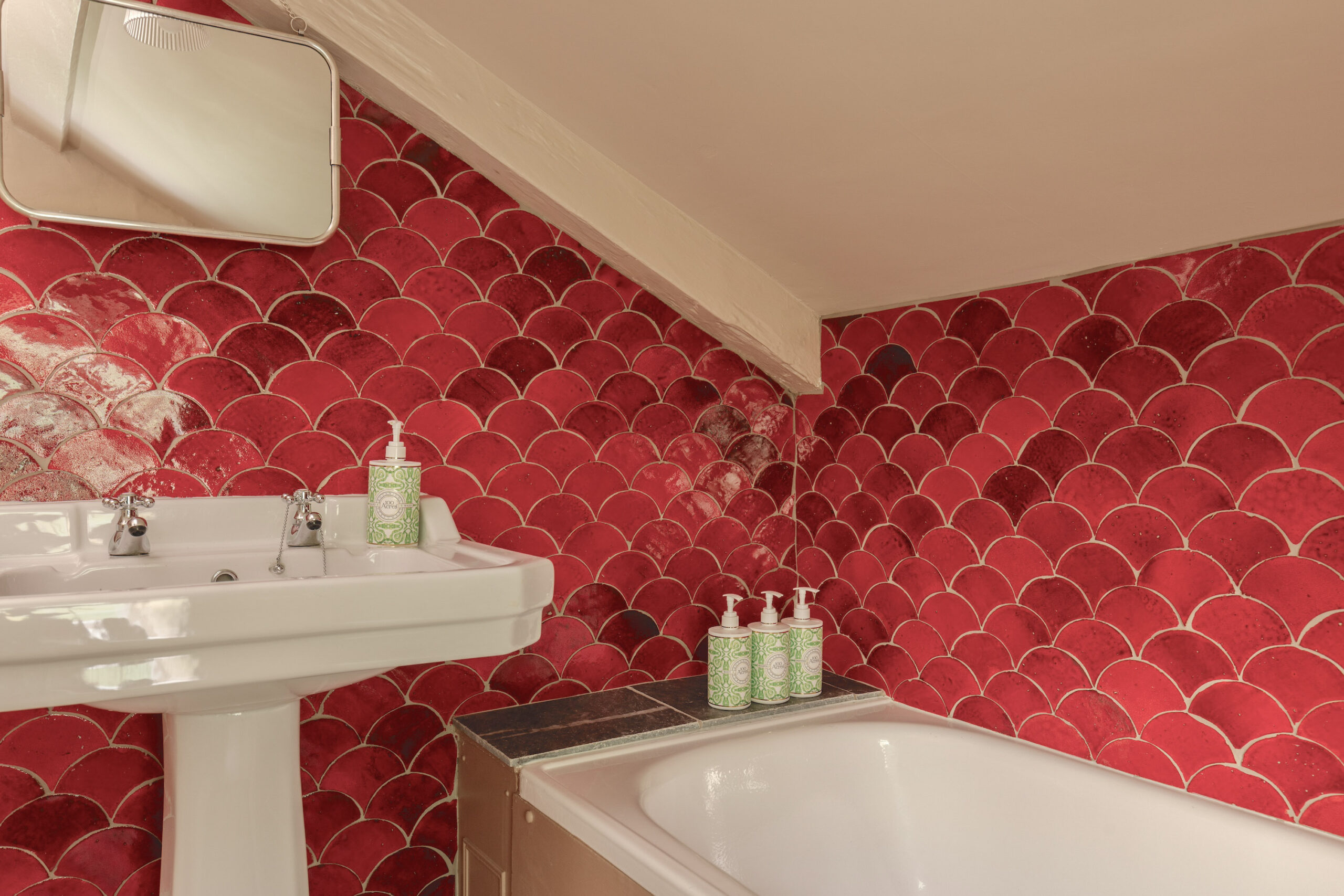 Sleeps 5 + baby: Ground-floor 1 x super-kingsize or twin bedroom with ensuite shower bathroom, upstairs 1 x kingsize bedroom and 1 x single bedroom sharing bathroom with tub, full kitchen (oven, grill, fridge/freezer, kettle, toaster, Nespresso & microwave), large private garden with lounge chairs, firepit & wood-fired bath. 2 dogs welcome.