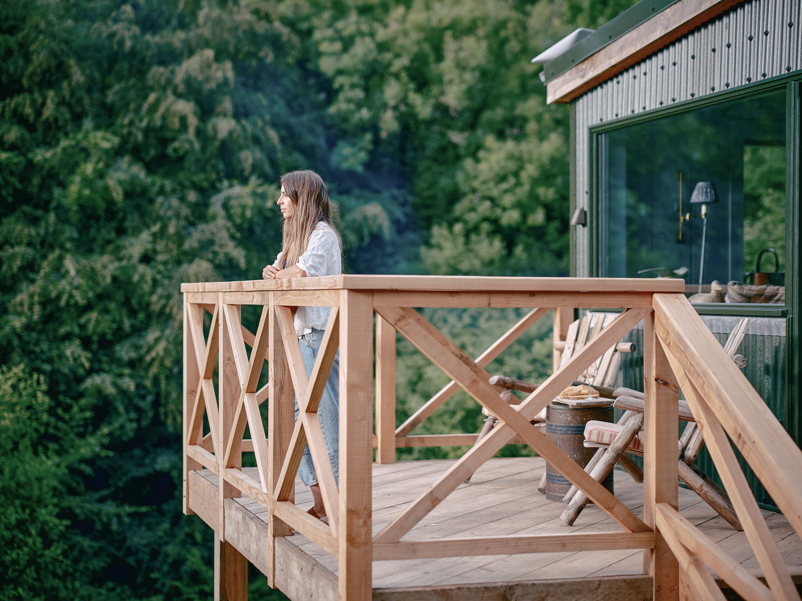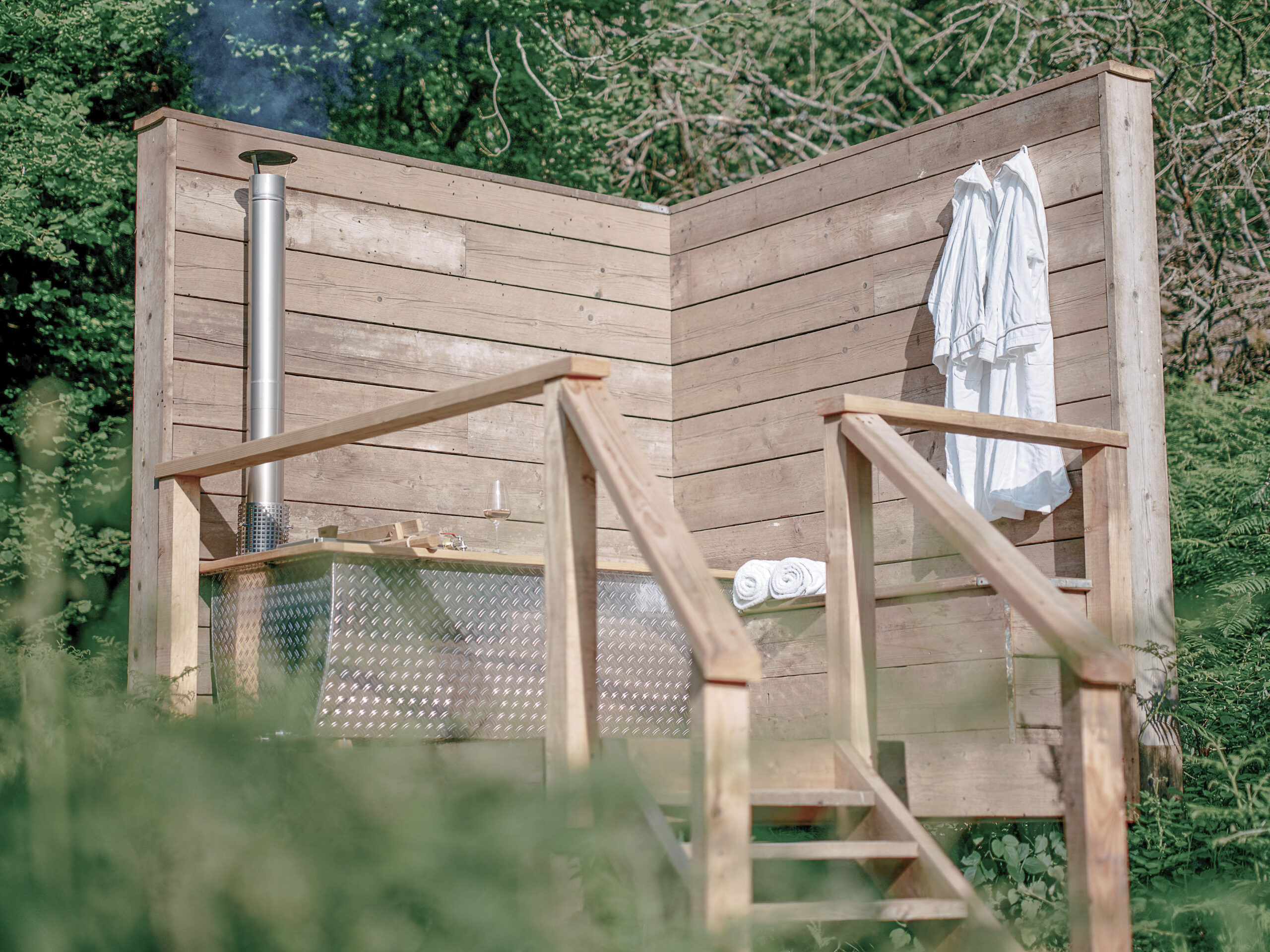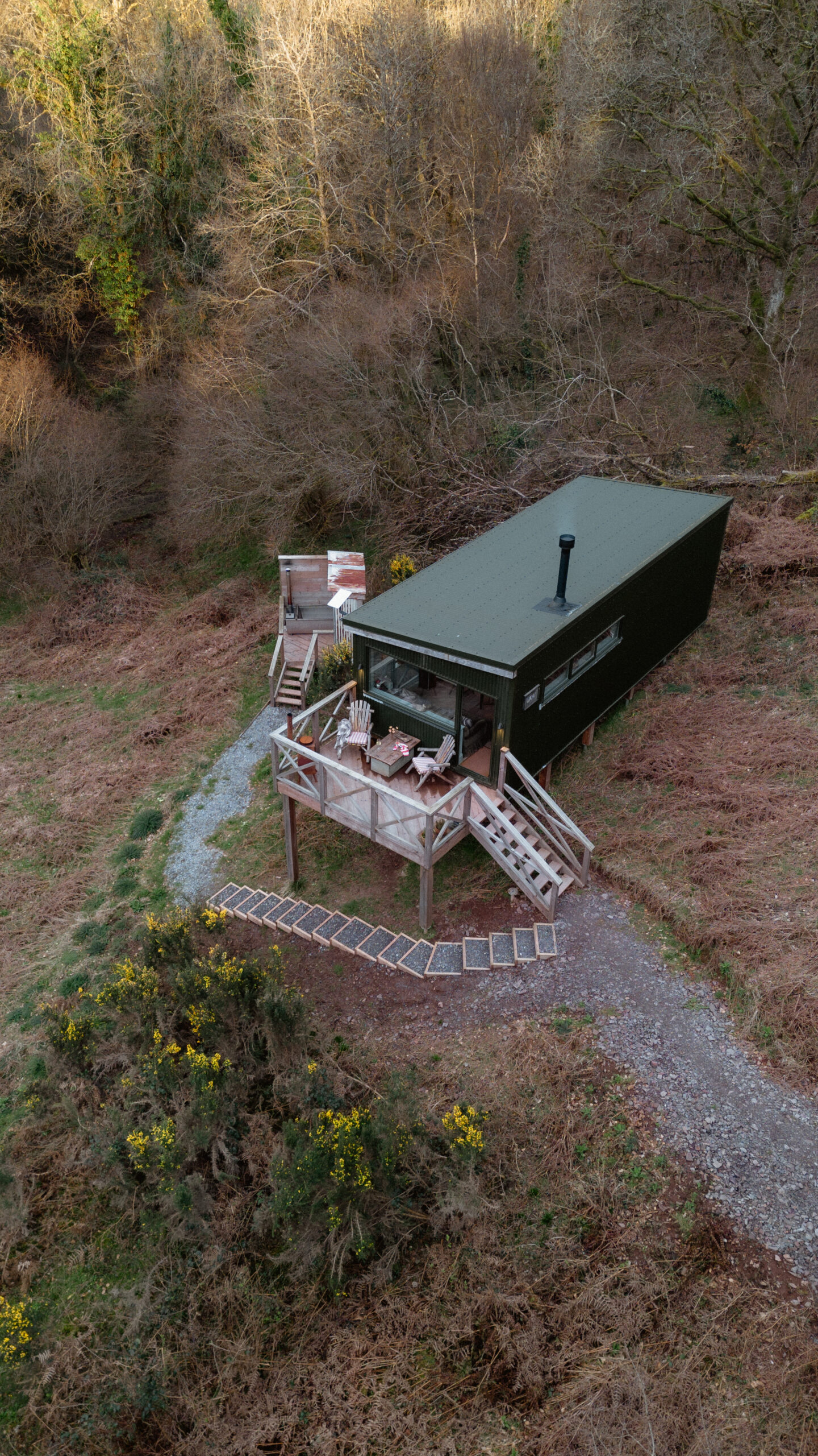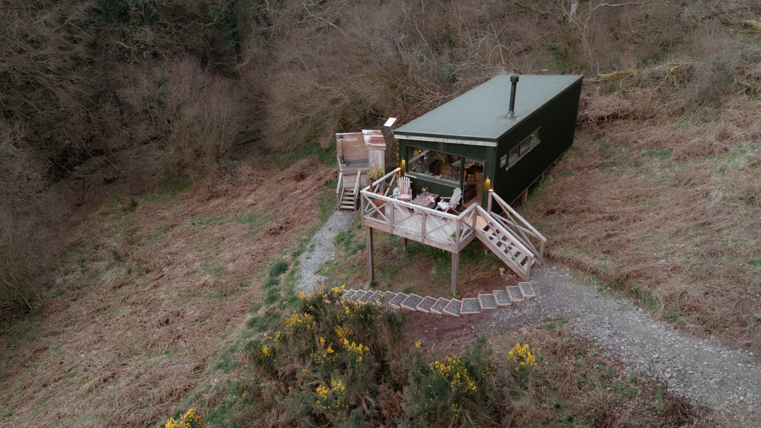 • "We were lucky enough to be one of the first guests here and were blown away. Benjamin and Yolanda have transformed the land into a re-wilding project and the results so far are breathtaking. On our first morning’s walk through the woodland valley and wildflower meadow, along the stream, we spotted a roe deer and calf, the magnificent long-horn bull (truly a sight to behold!) and his equally impressive ladies, herds of wild red deer, beaver dams and a curious fox just meters away. The cabin is beautifully designed with everything you could need - a steaming hot shower, vast sprawling sofa, insanely comfy bed and little curiosities and antiques throughout. Within seconds of arriving we had fired up the BBQ, lit the hot tub and happily sipped on wine looking out over valley views. We departed having had some much needed decompression, surrounded by the best of nature (left alone to do her thing), and are already working out dates to return and try out the two additional cabins. Thank you to Ben and Yolanda for creating a complete idyll!"