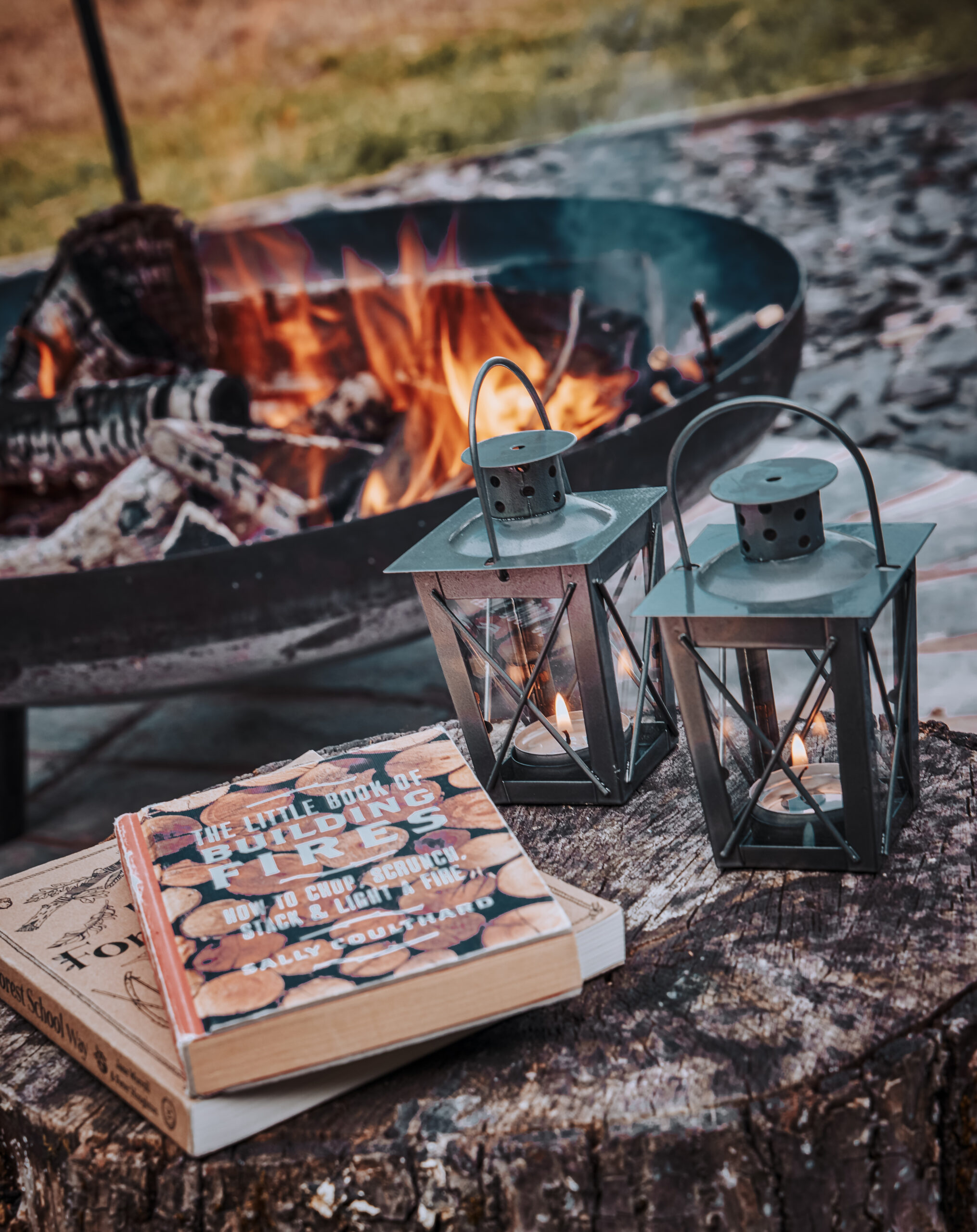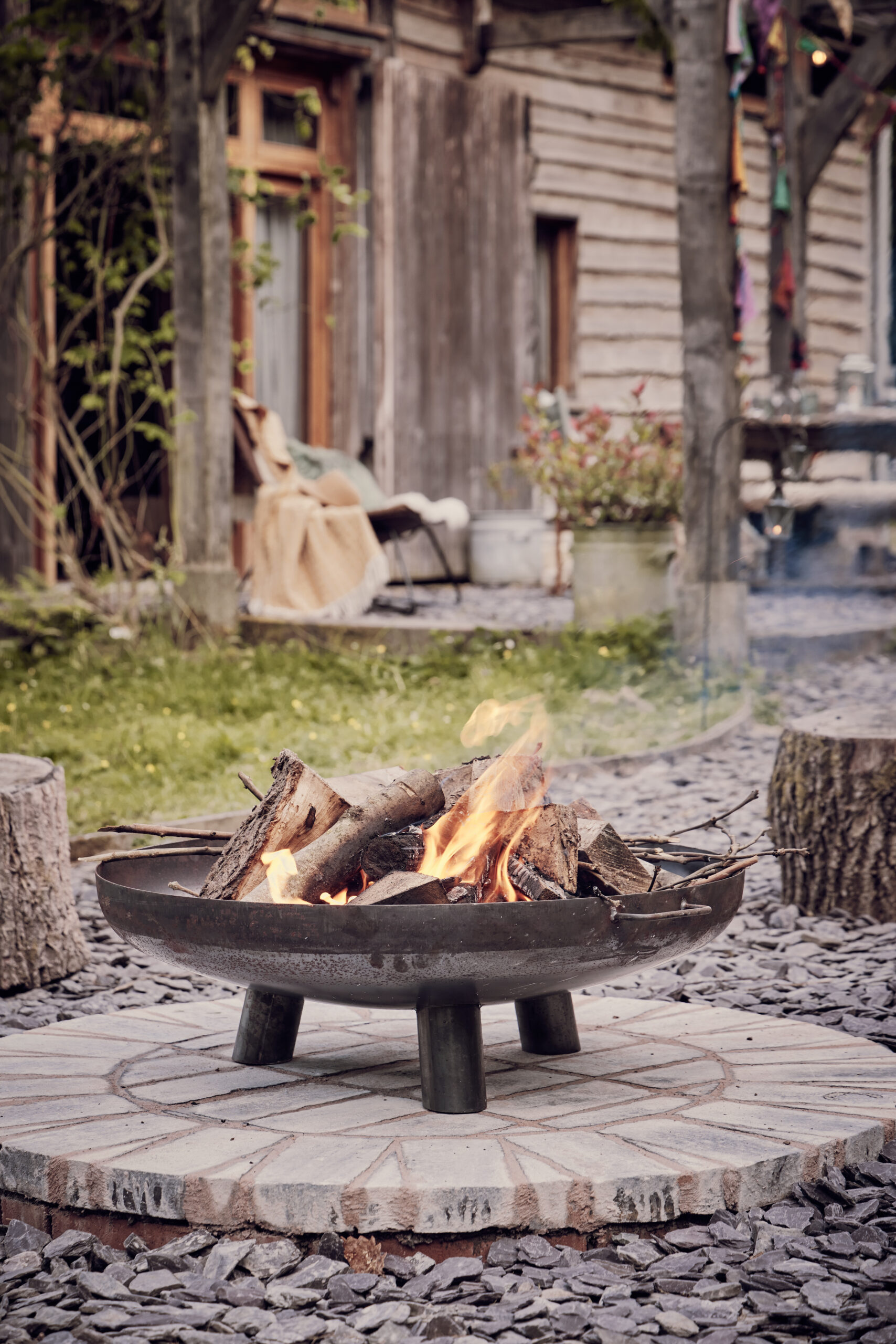 - Outdoor area with dining table and firepit and alfesco bathtub
