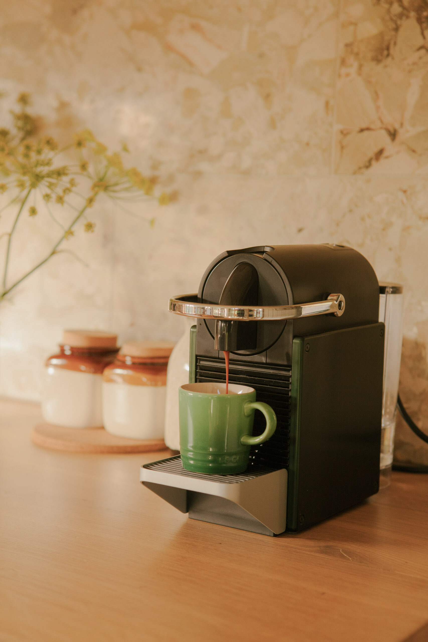 - Well-equipped kitchen with small fridge/freezer, induction hob, oven/microwave combi, dishwasher, chefs’ tap, Le Creuset whistling kettle, toaster, Nespresso + pods