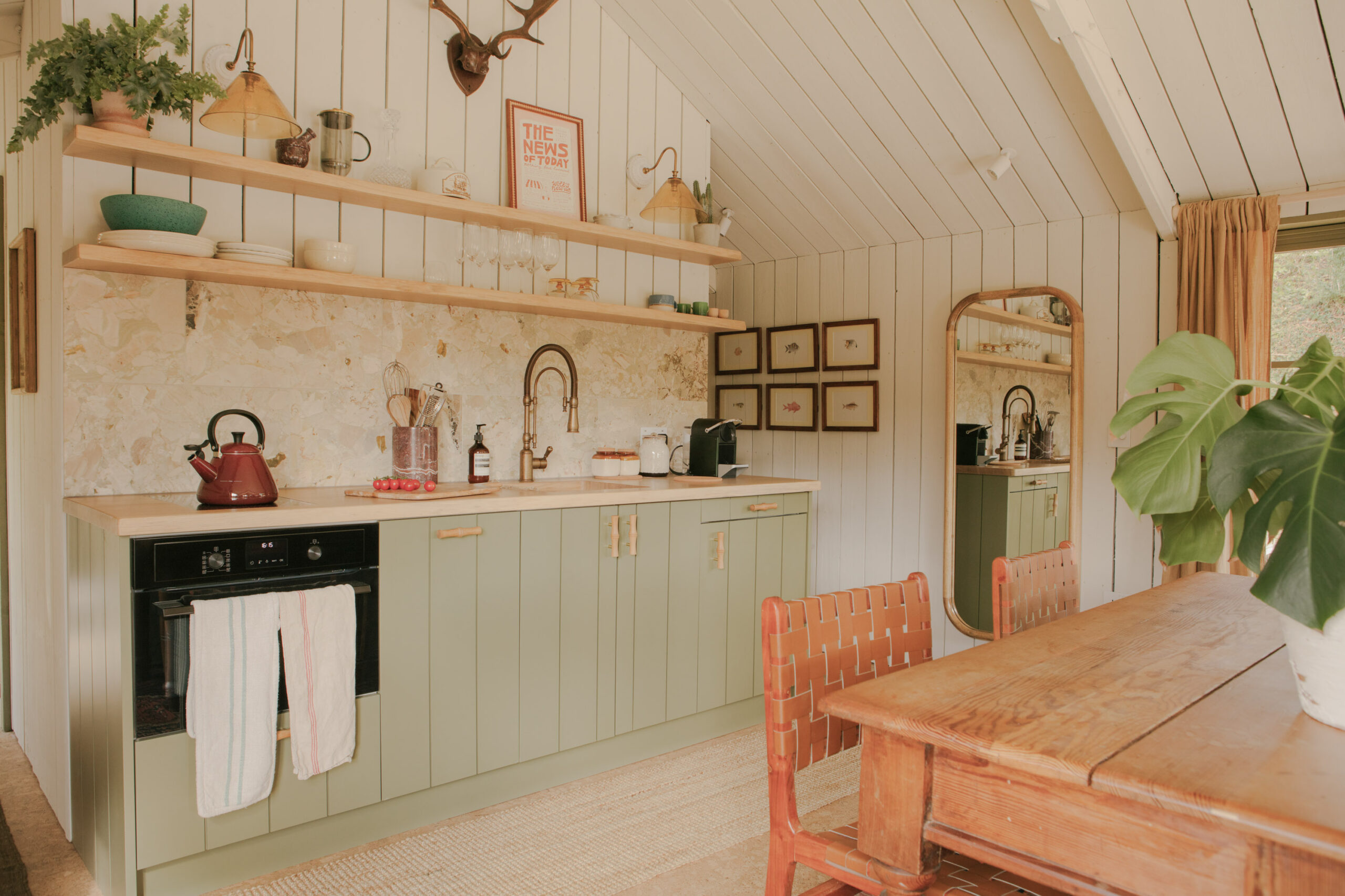 “The cabin was originally a very unloved carport, but we saw its potential and, with the help of some very talented friends and Camden Mews, our friend Guy’s construction company, we reimagined the space from the ground up. We were inspired by American lakehouses: warm, inviting and designed for slow living. We wanted to create somewhere that feels like a true escape, but also a place that feels instantly familiar and comfortable.” Owners, Lauren & Simon