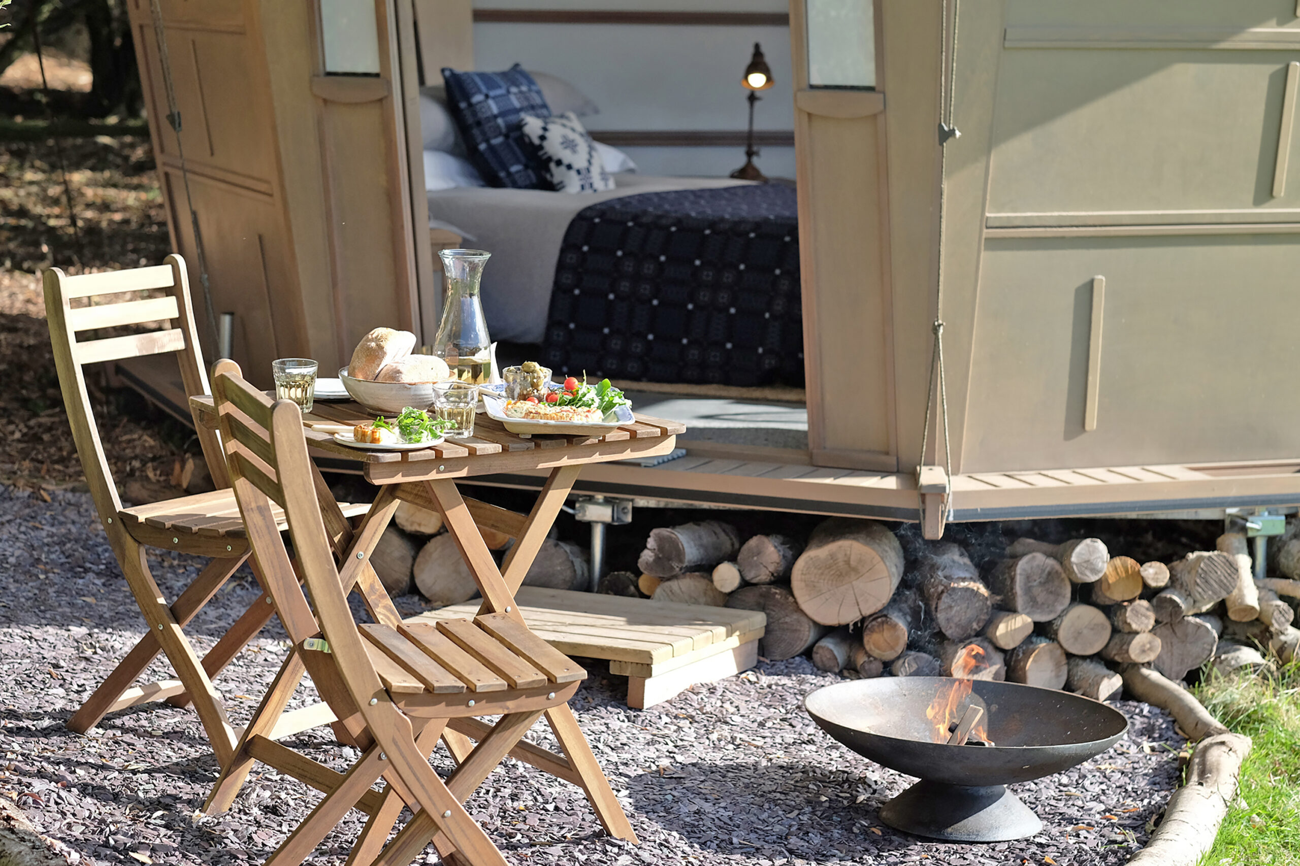 “The fabulous views across the site to the sea, and watching wildlife from your bed. At night, sitting out beside your firepit and watching the light disappear across the channel is such a lovely thing to do. Being here is true escapism.”