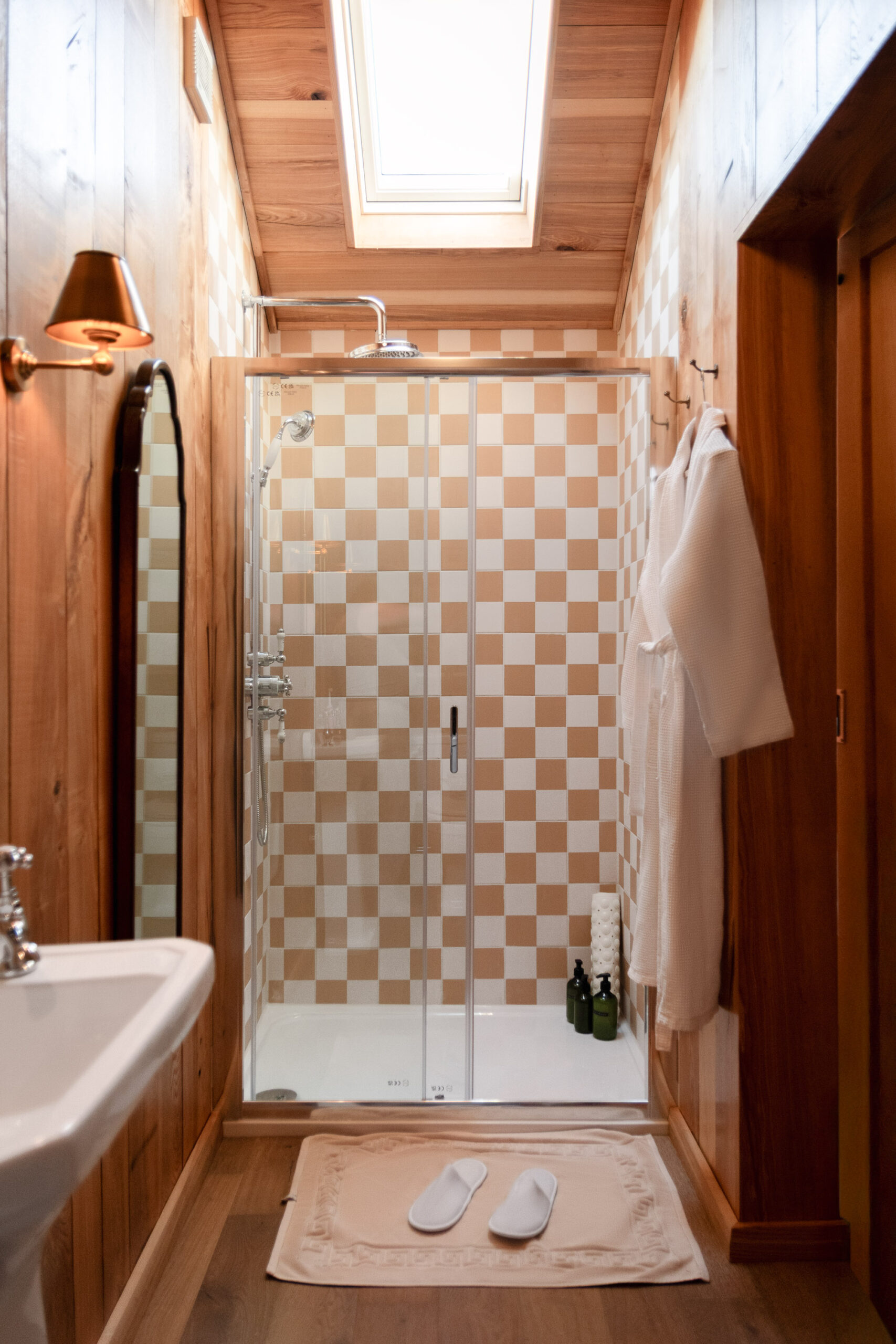 - Bathroom with waterfall shower; slippers and eco-friendly toiletries