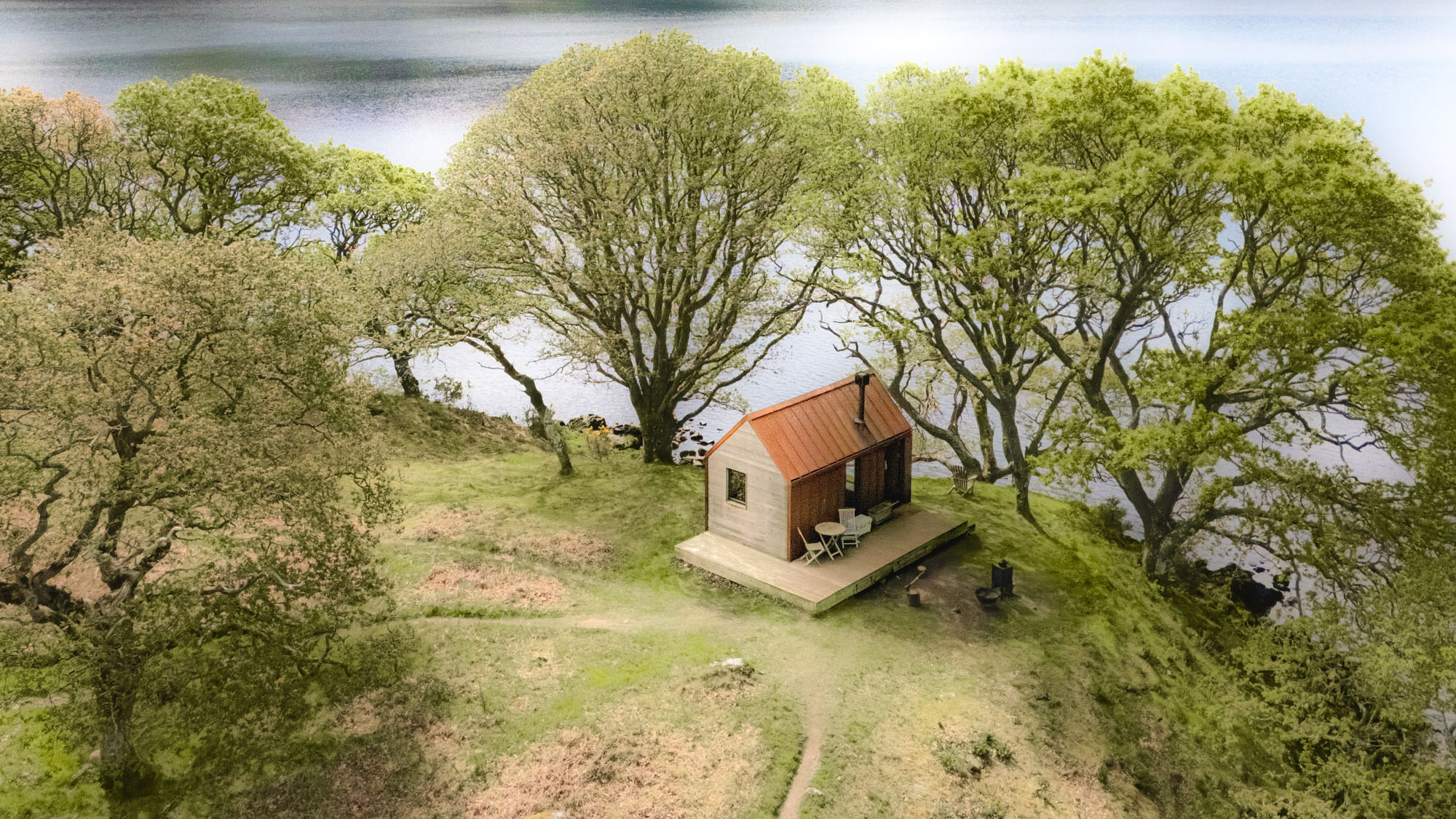 - A trio of standalone cabins on the shores of Loch Nell. Each has: