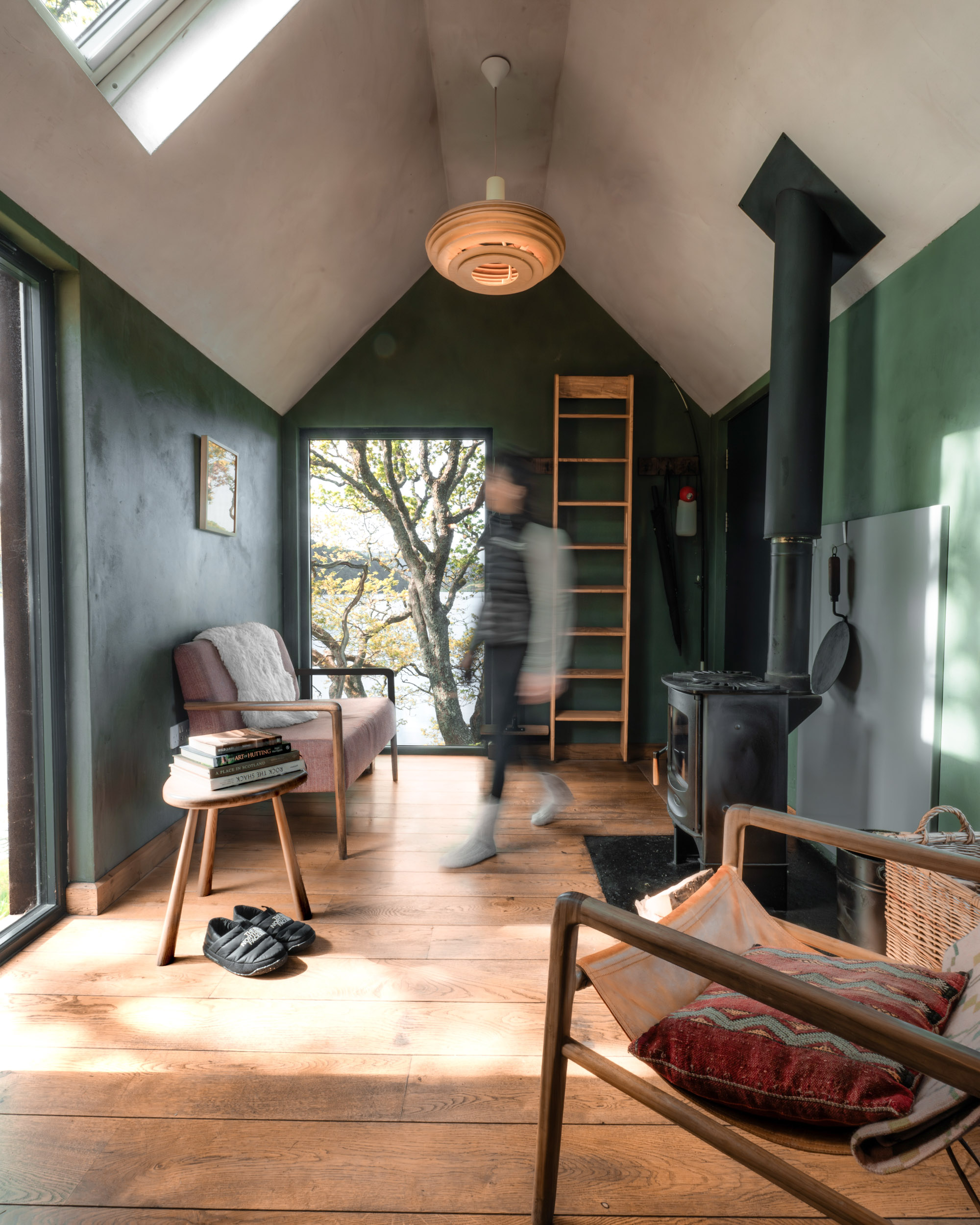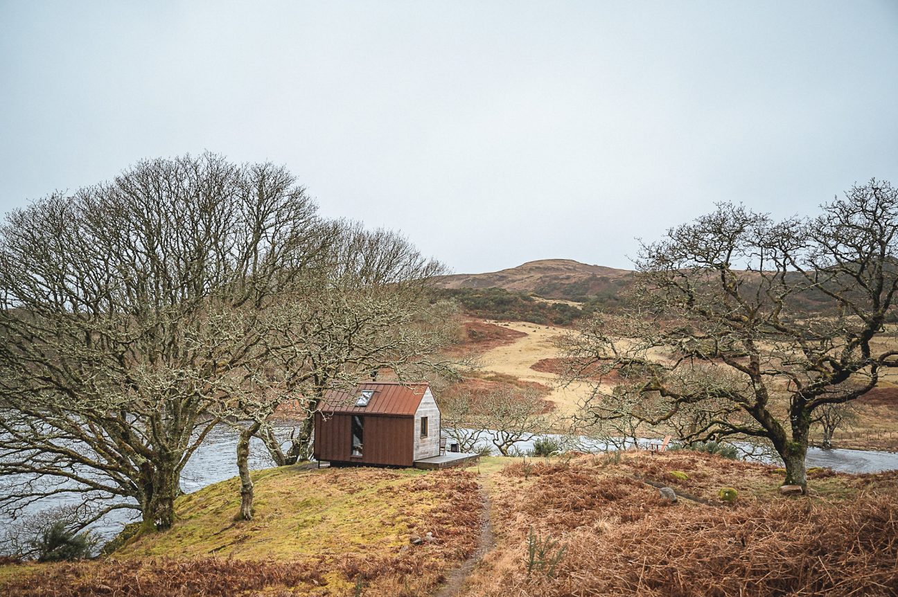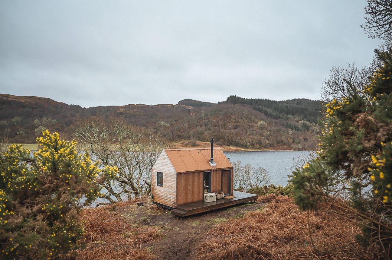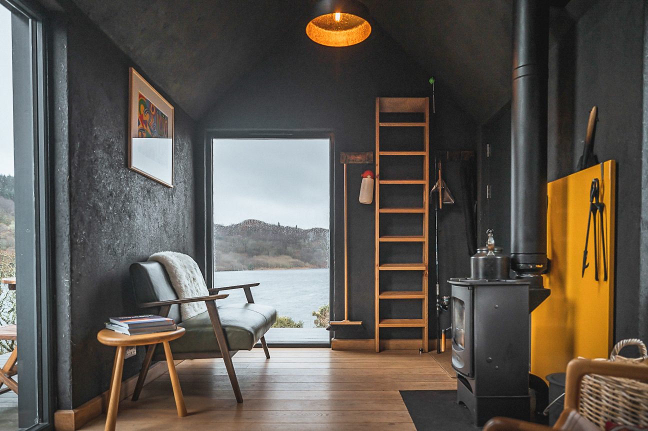 The breathtaking setting, and the mix of high-quality Scottish interiors (Homer settle sofas, Henry Swanzy conker tables, Woodpop artwork) with the simplicity of off-grid living.