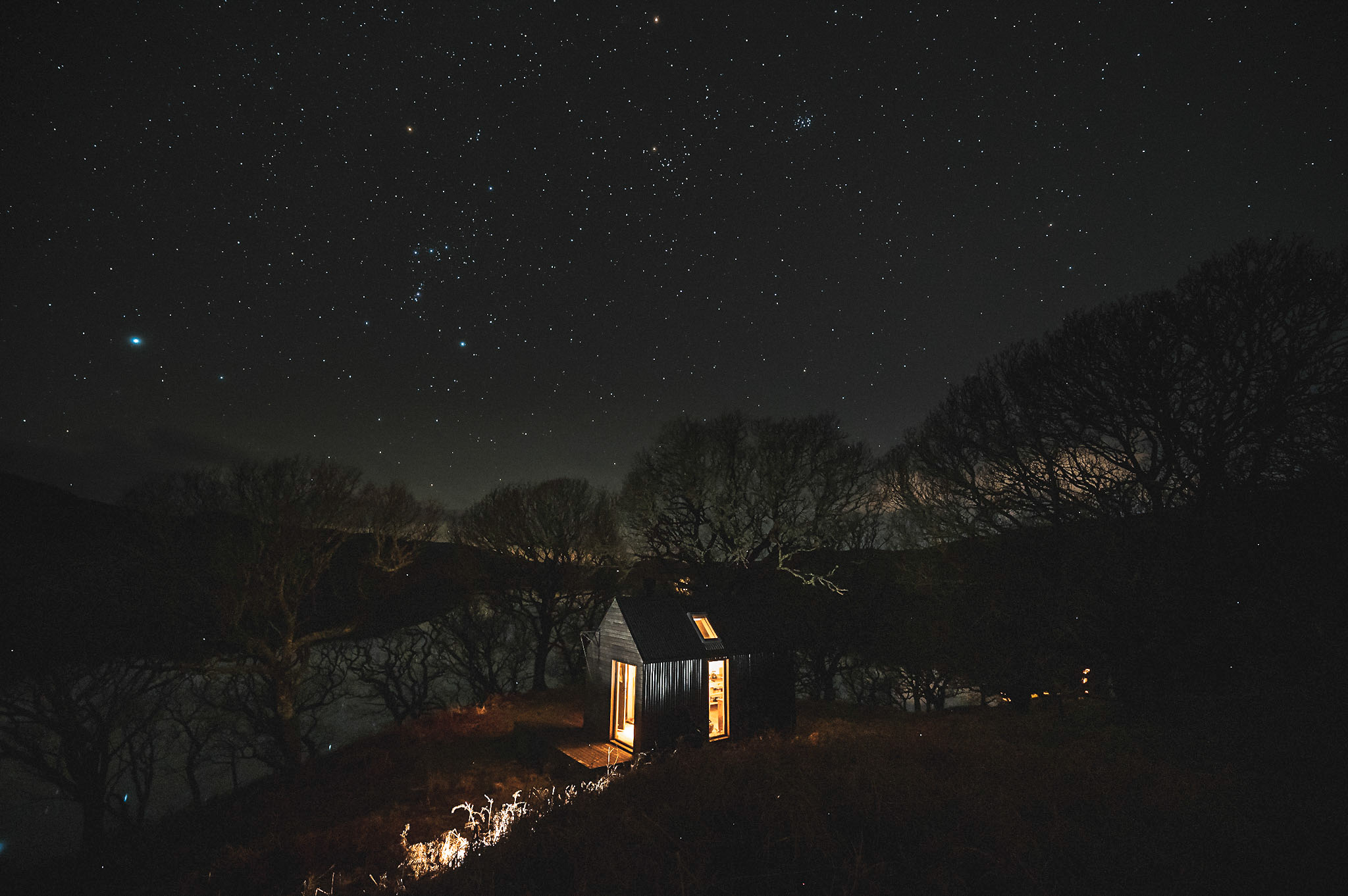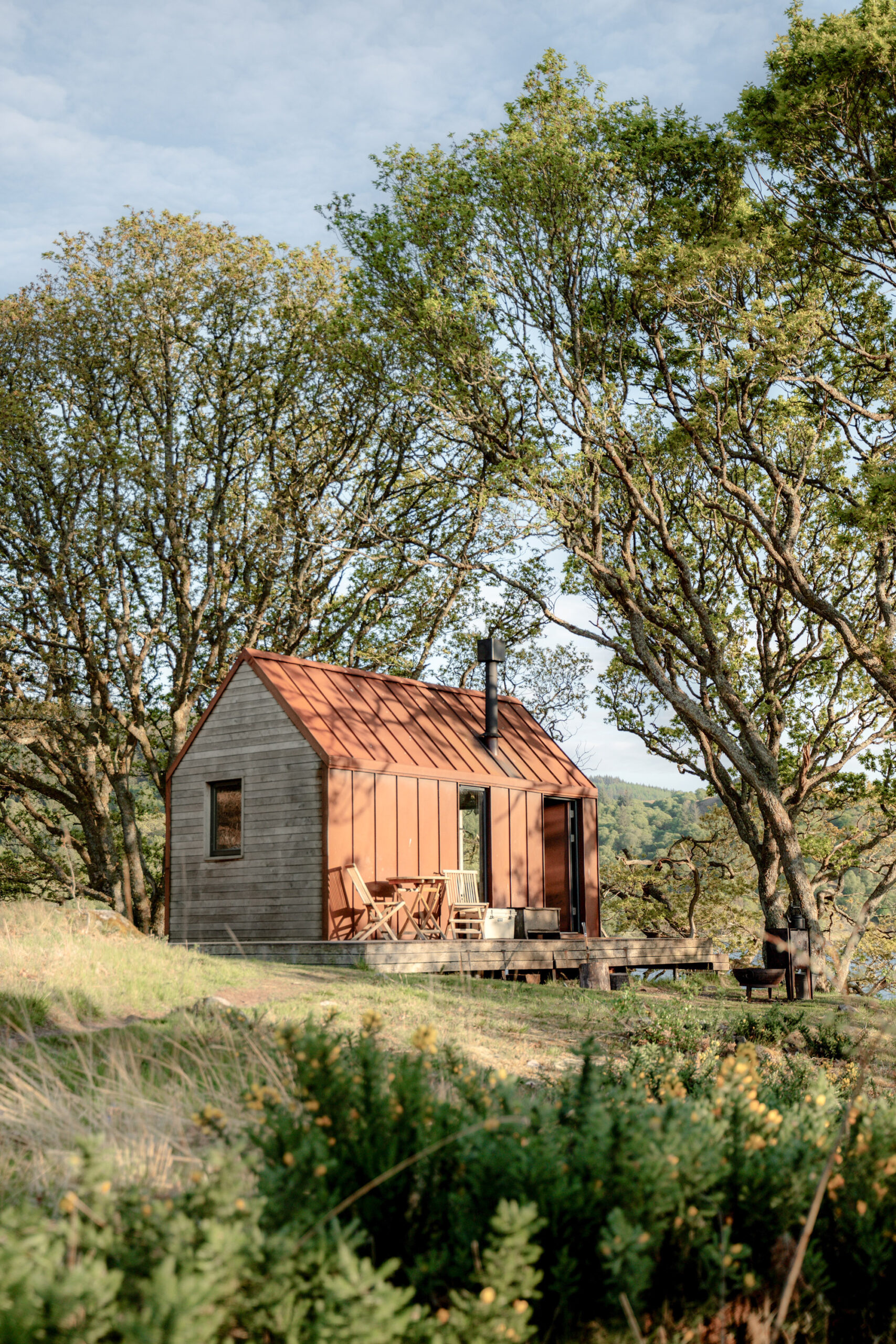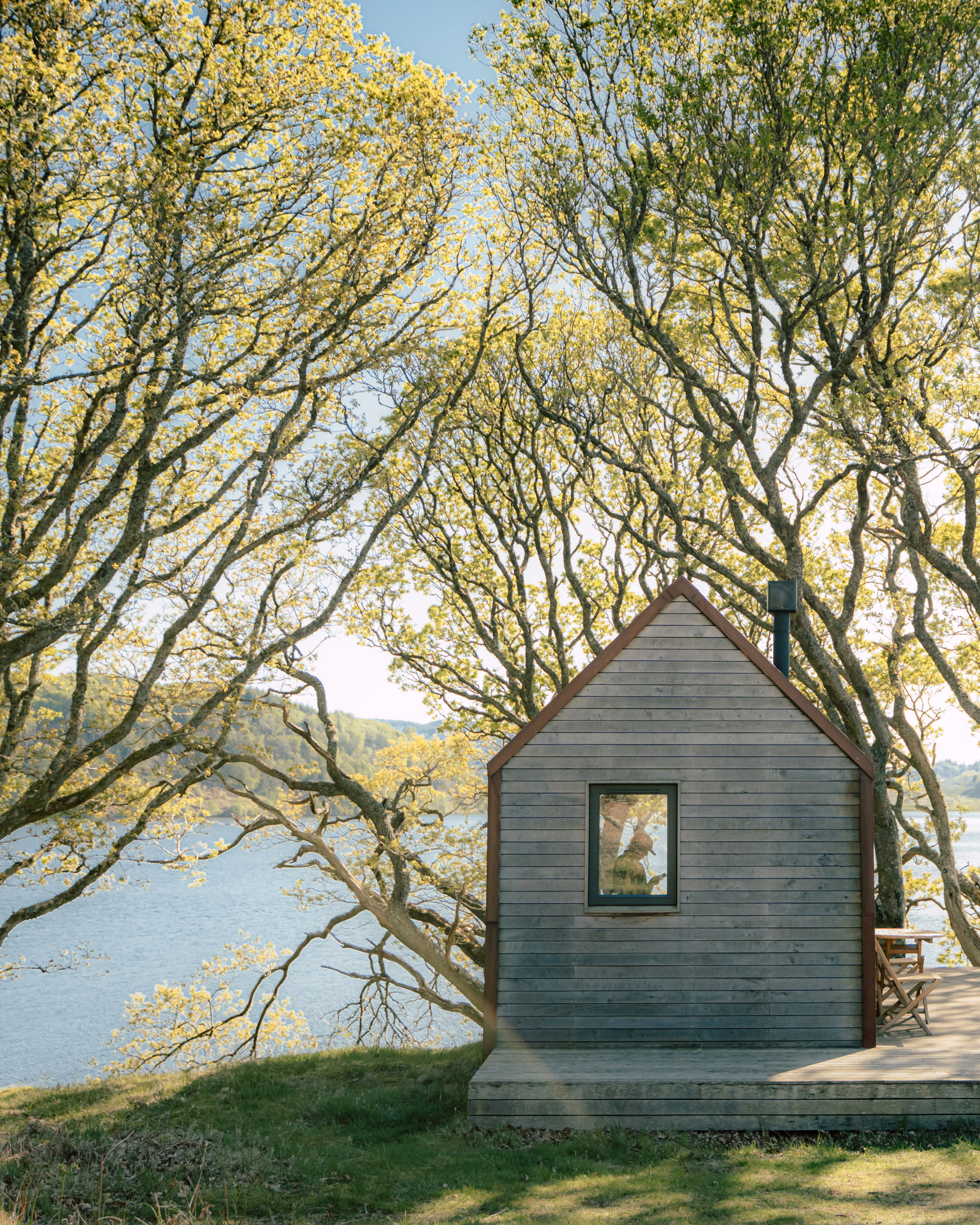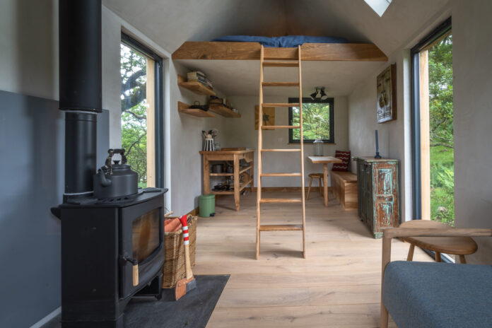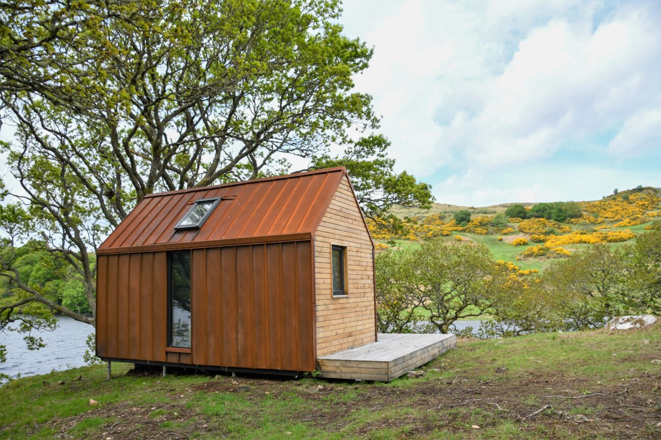 The breathtaking setting, and the mix of high-quality Scottish interiors (Homer settle sofas, Henry Swanzy conker tables, Woodpop artwork) with the simplicity of off-grid living.