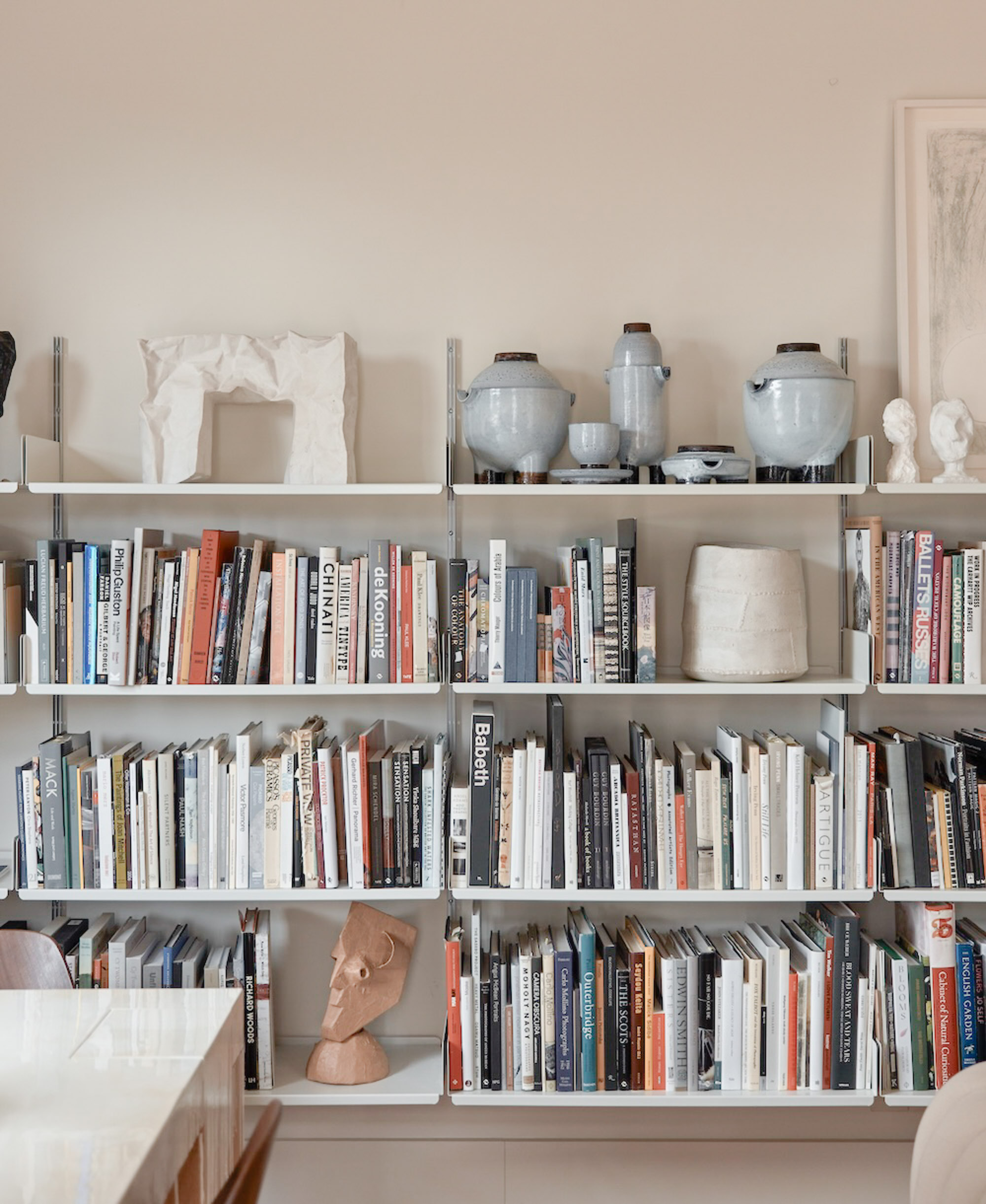 The gentle colour pallette, so calm and inviting, and the enormous library of inspiring books.