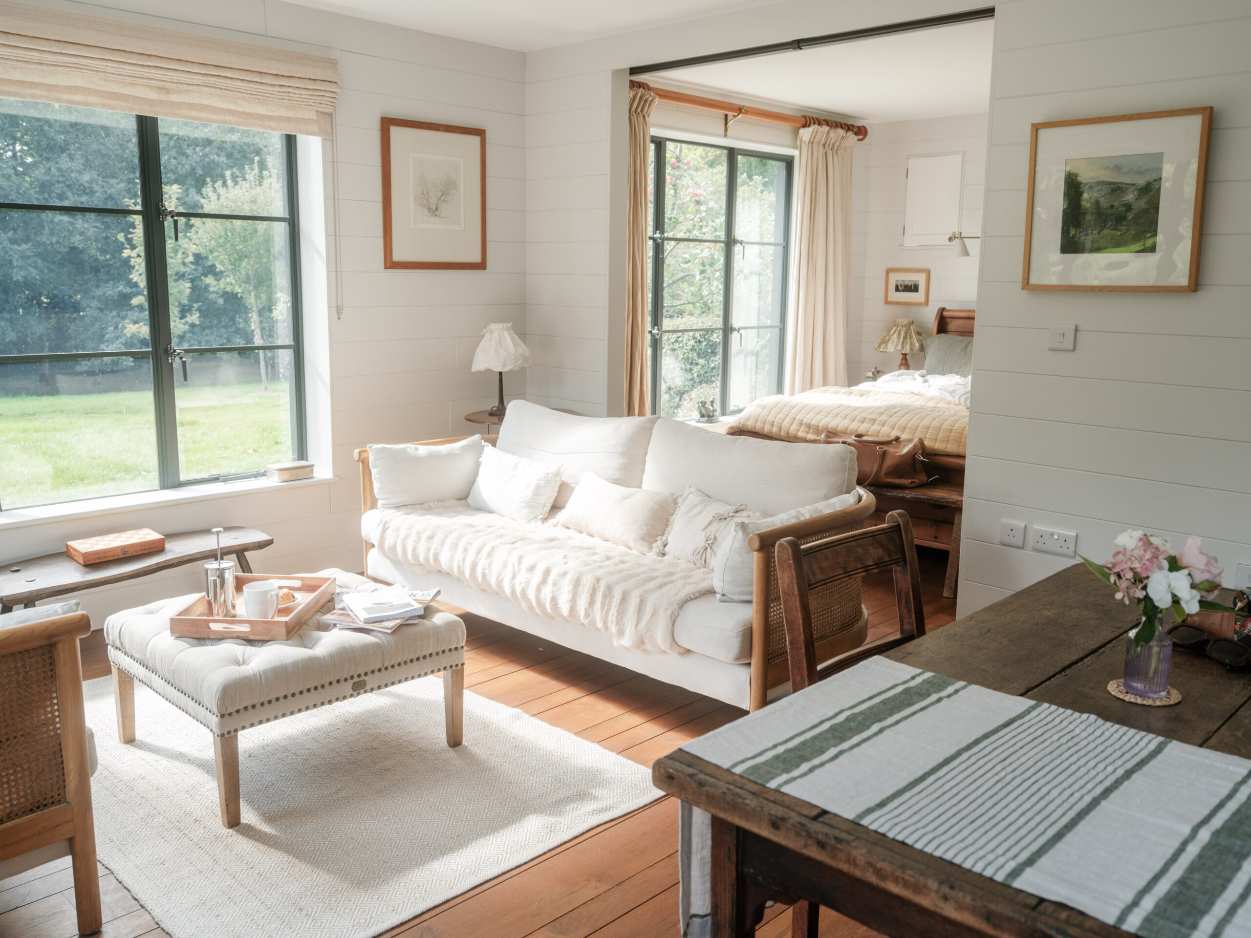 “We first set eyes on our house one rainy, windy day in July 1994. Derelict since 1947 and occupied by one rather fierce ram, it had no running water or electricity…. just a roof and an Elizabethan timbered ceiling. We bought it a month later at a local auction and it took 2 years to restore and rebuild. We then decided to convert the stable into a rental cabin, mainly because of its position. We thought how nice it would be to offer a tranquil setting for people to come and stay to unwind — an antidote to fast-paced London living. That felt far better than just using the building to store random pieces of old furniture!” Owner, Sian