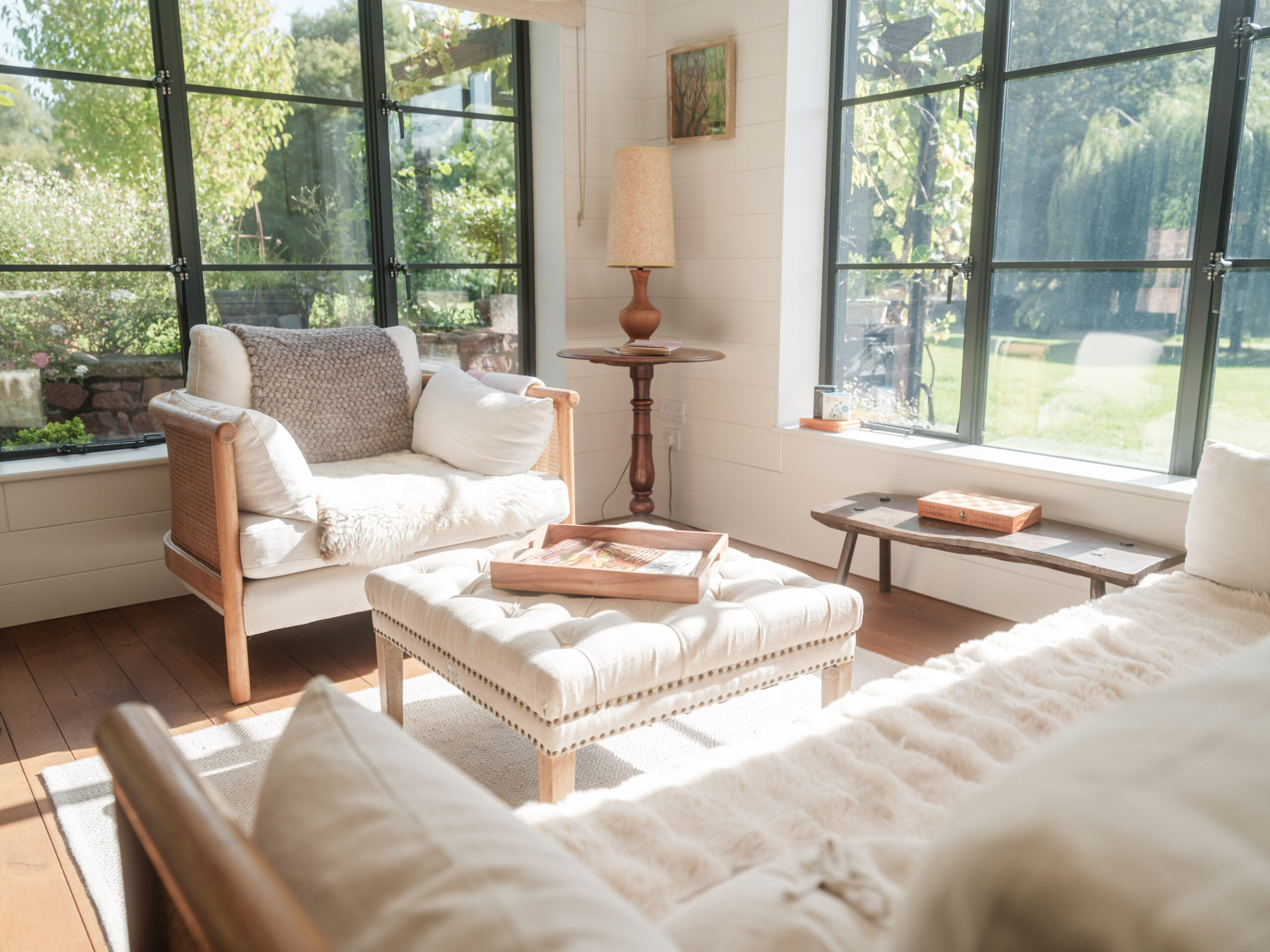 - Light-filled lounge area with woodburner, board games, books, candles and maps