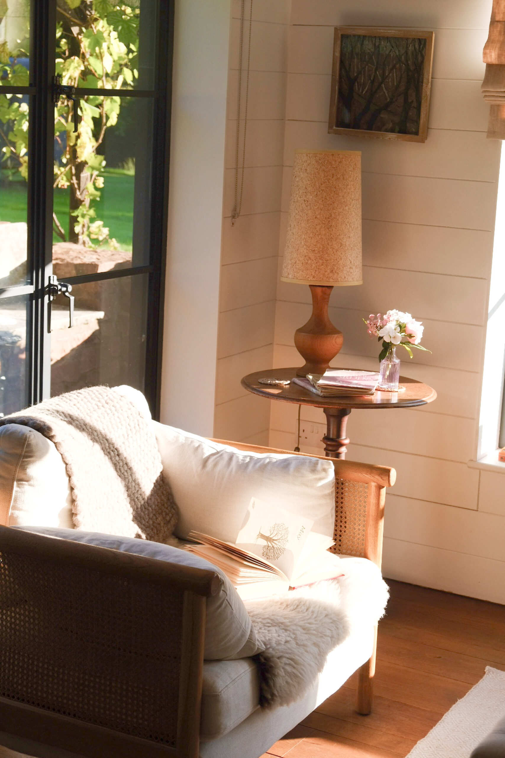 “Sitting on the swing or languishing in the tree seat under the old oak, soaking up the last rays of sun with a glass of rose.”