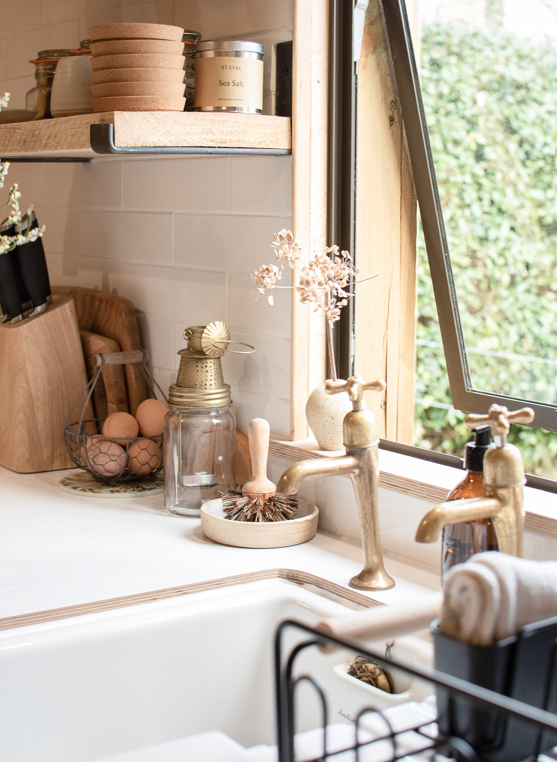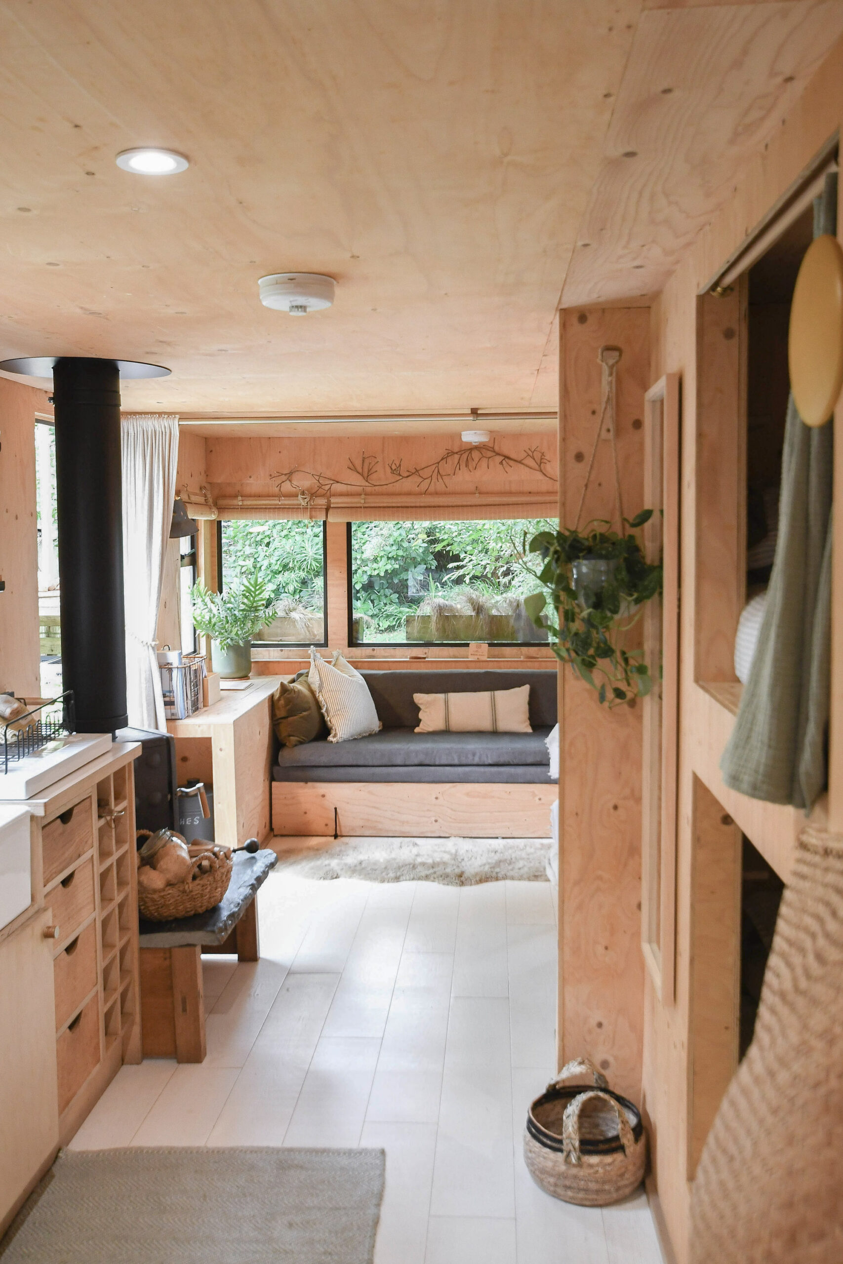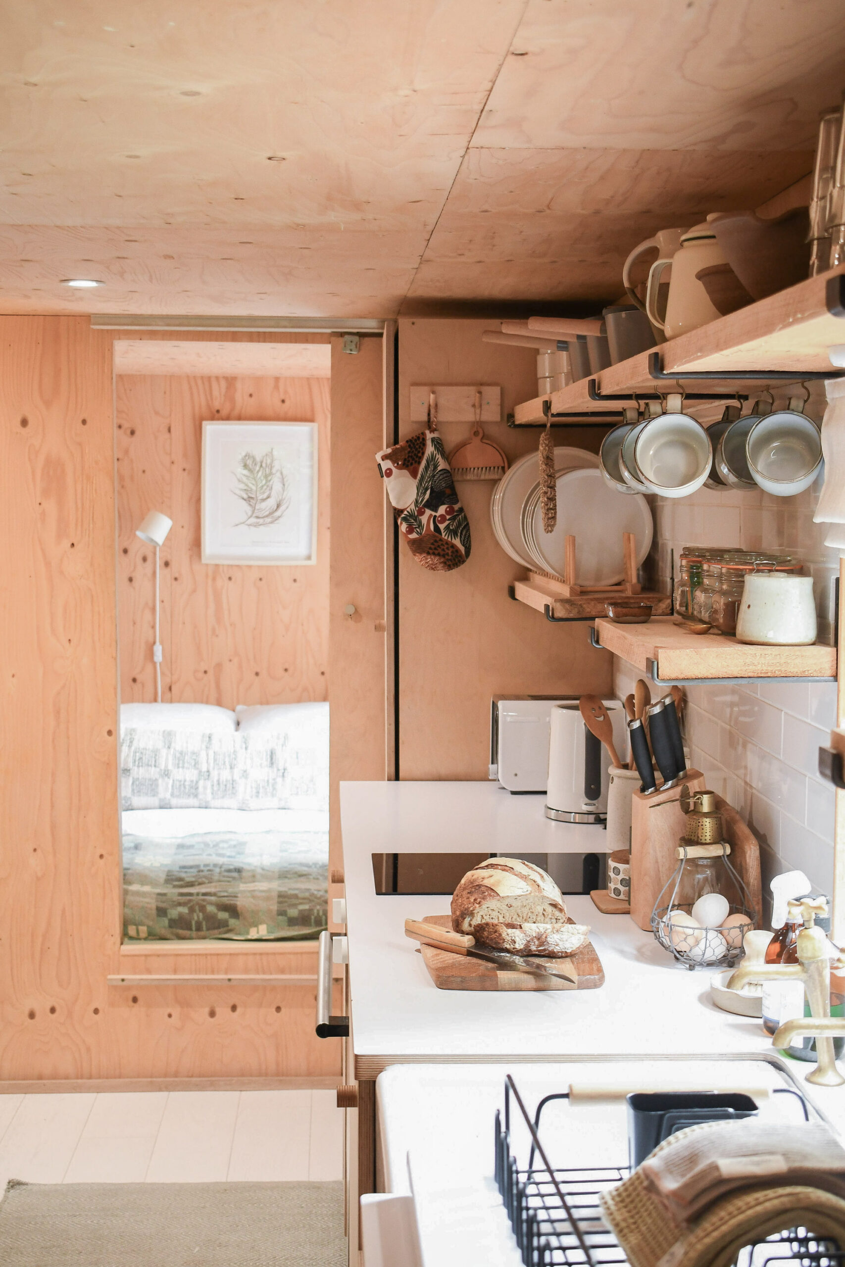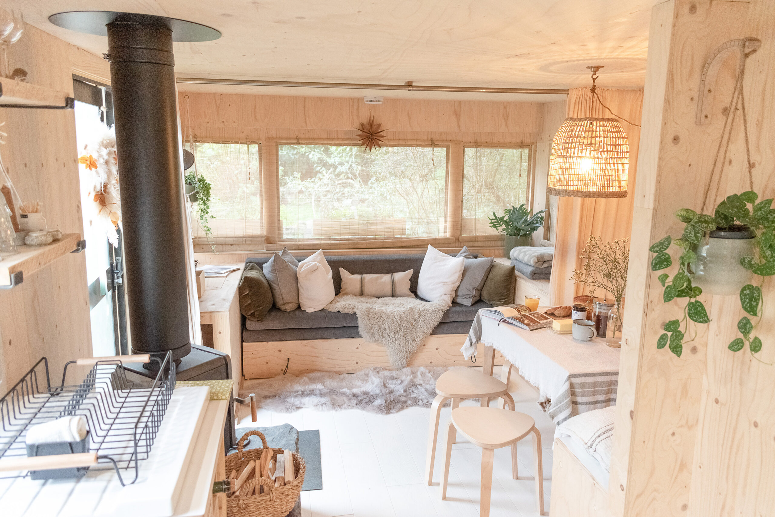 “We used a humdrum static caravan to provide the inner frame, and sustainably sourced materials inside and out to create a more pleasing aesthetic. Furnishings and produces are ethically or locally sourced. Our Eco-designed Ekol Apple pie woodburner is perfect for heating smaller spaces efficiently and we supply Lekto compressed wood fuel harvested from sustainable plantations and with no harmful chemicals. The waste ash is then thrown onto our compost.”