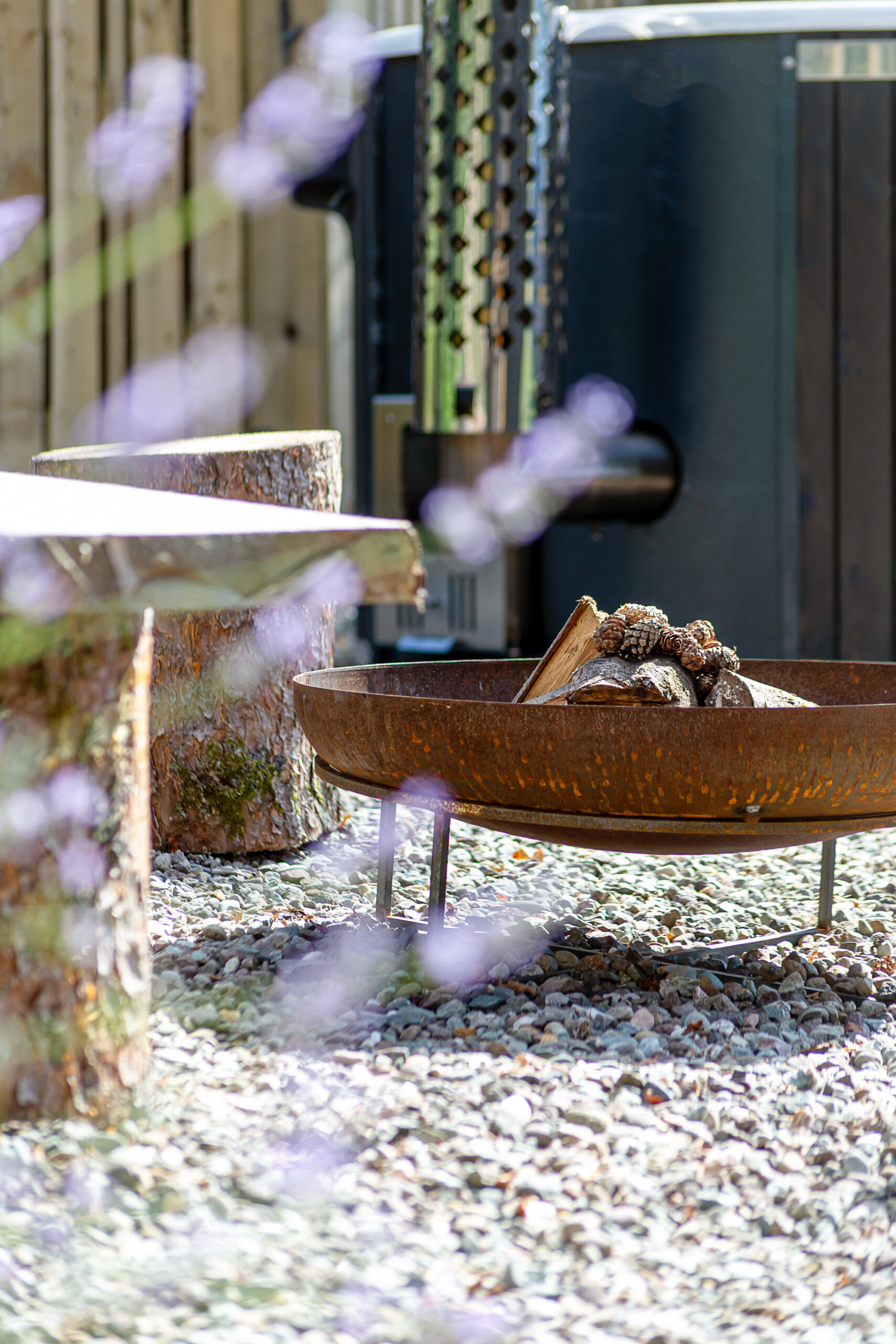 - Coorie – 2 bedrooms and bathrooms (king + ensuite shower room, twin + separate bathroom with shower/tub), kitchen, living area, deck with hot tub, garden and private jetty
