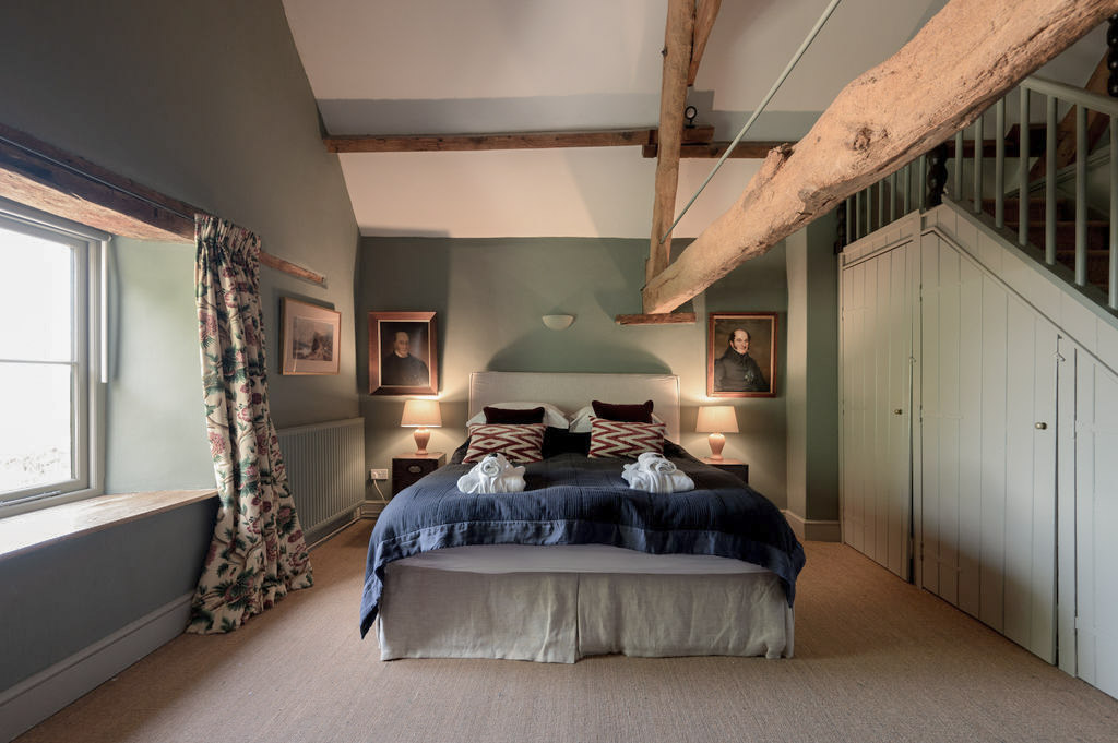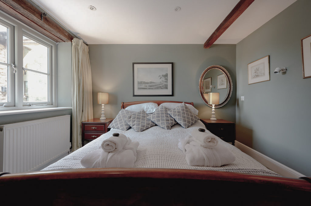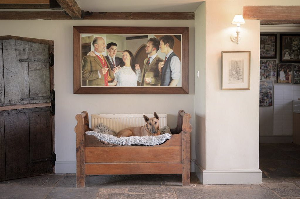 Yes, dogs are welcome — £20/dog/night — but they must be kept downstairs. An antique mahogany sleigh dog bed is provided, plus dog treats.