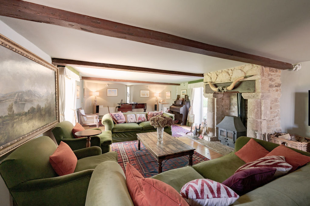 - Living room with woodburner, 3 sofas & grand Bechstein piano