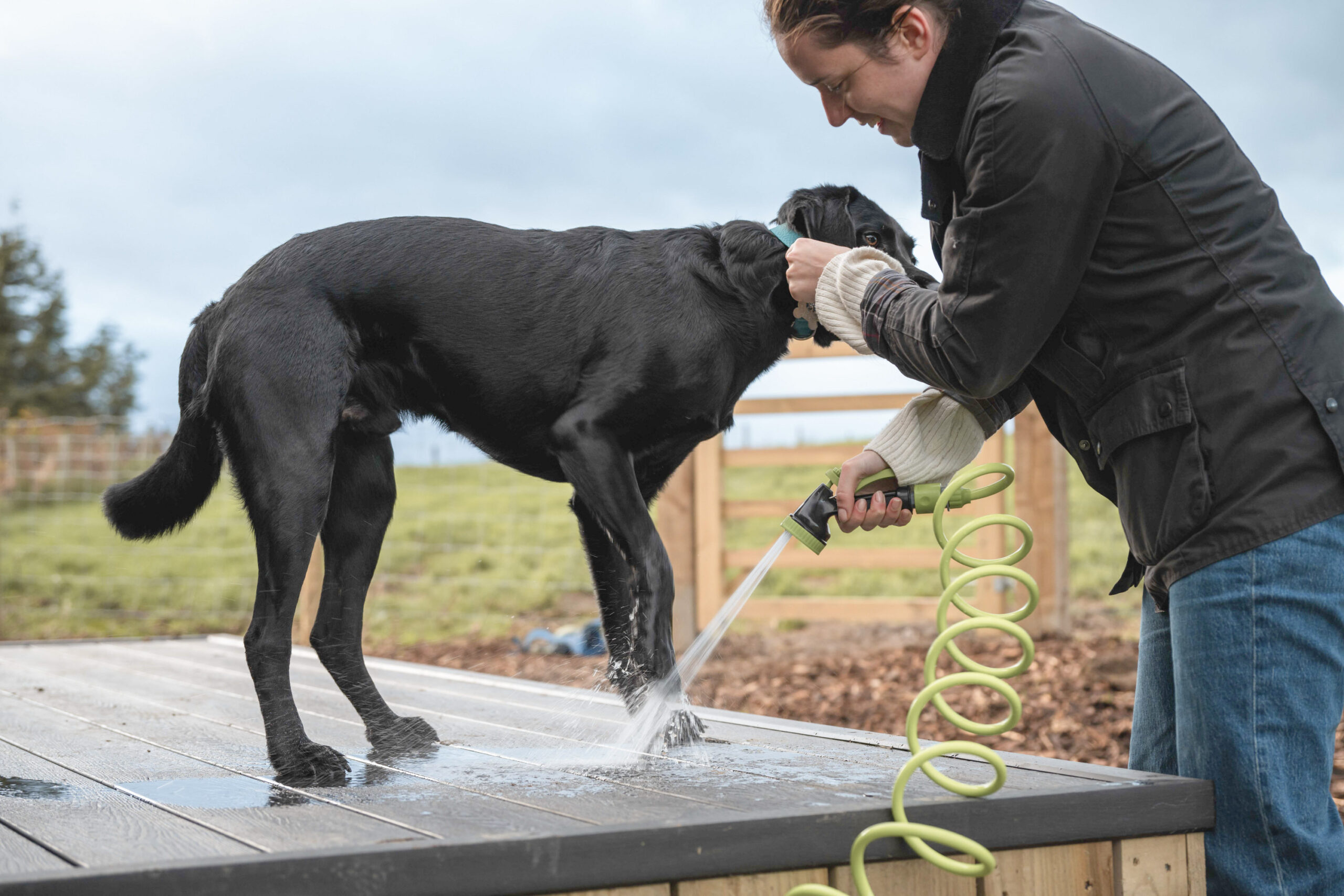 - Car parking area with wellie store (wellies to borrow) and cart to pull your luggage to the cabin