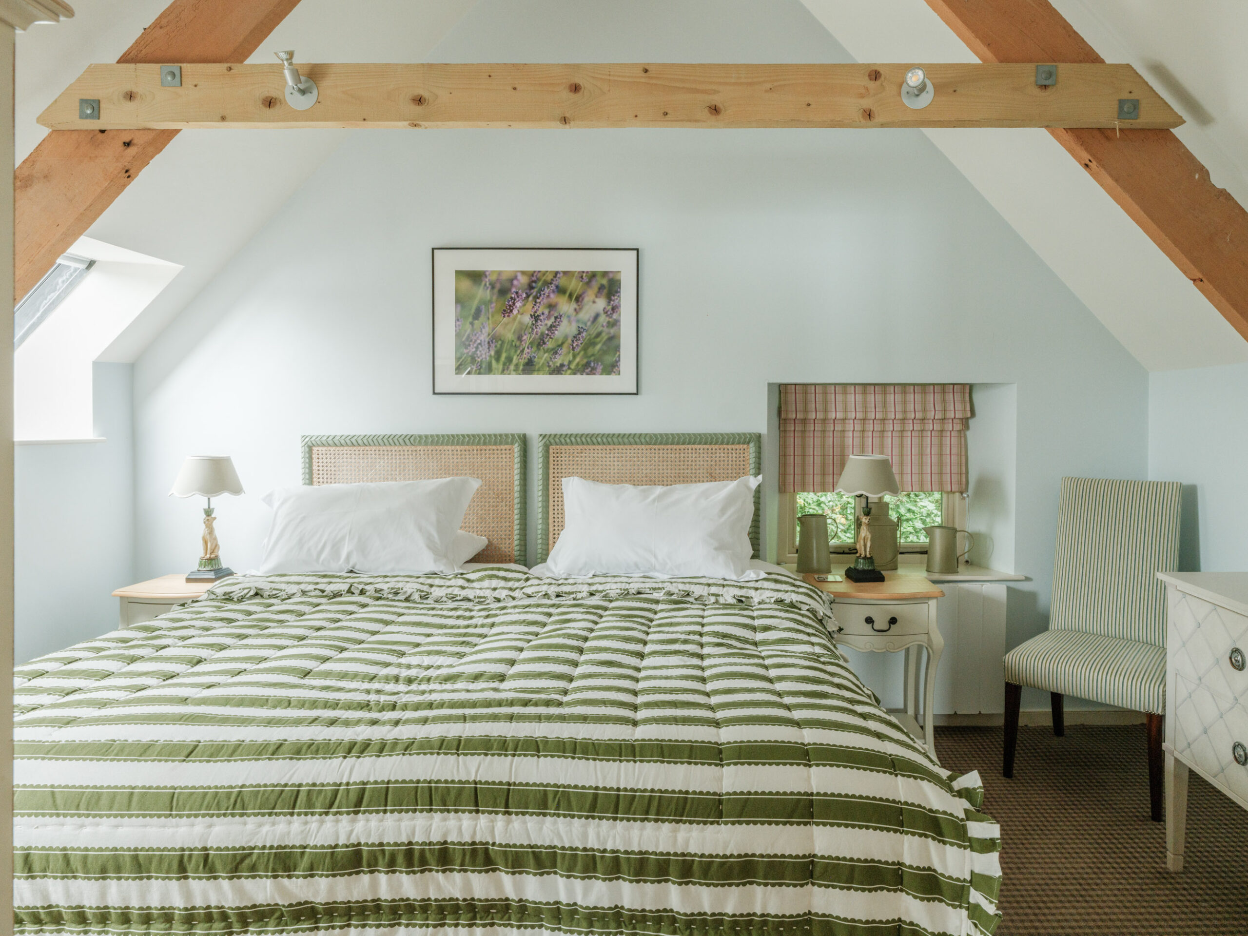 - 2 bedrooms: 1 x super-kingsize with ensuite shower bathroom and Juliet balcony; 1 x twin