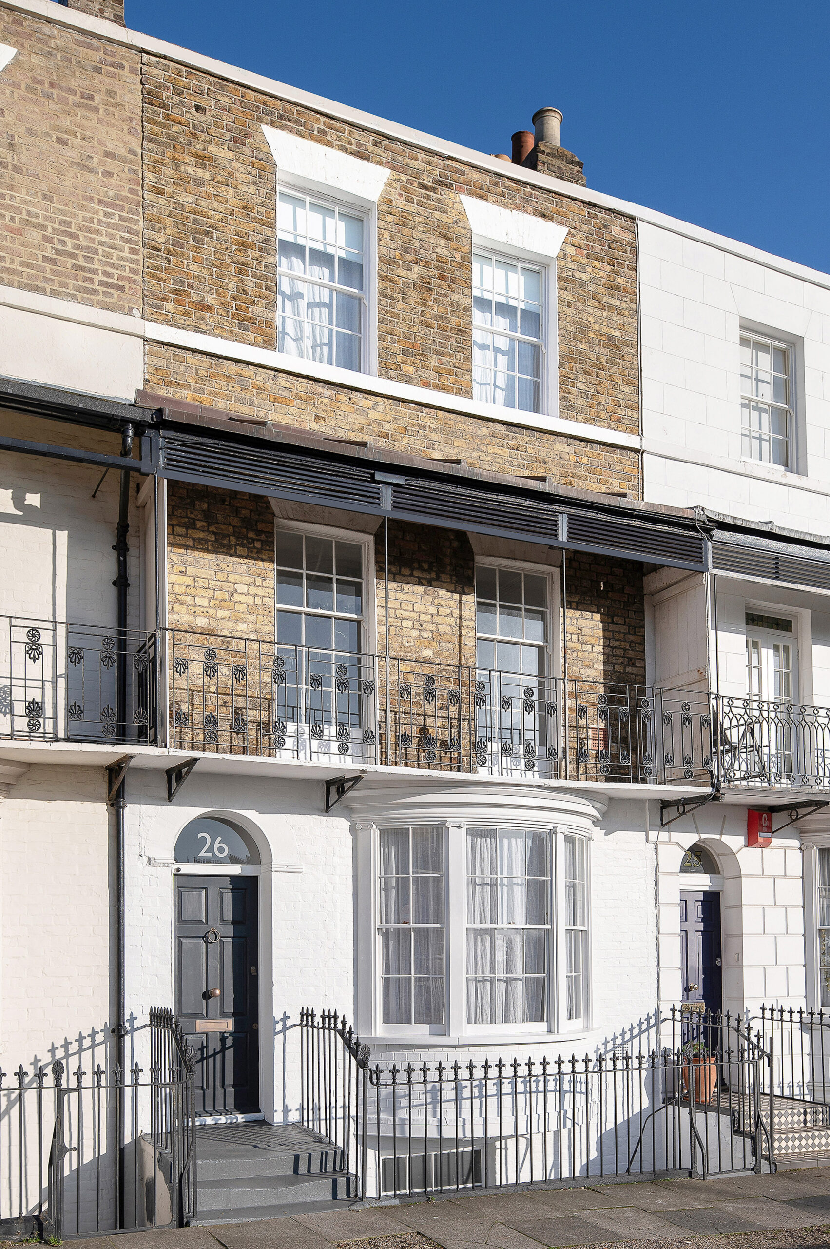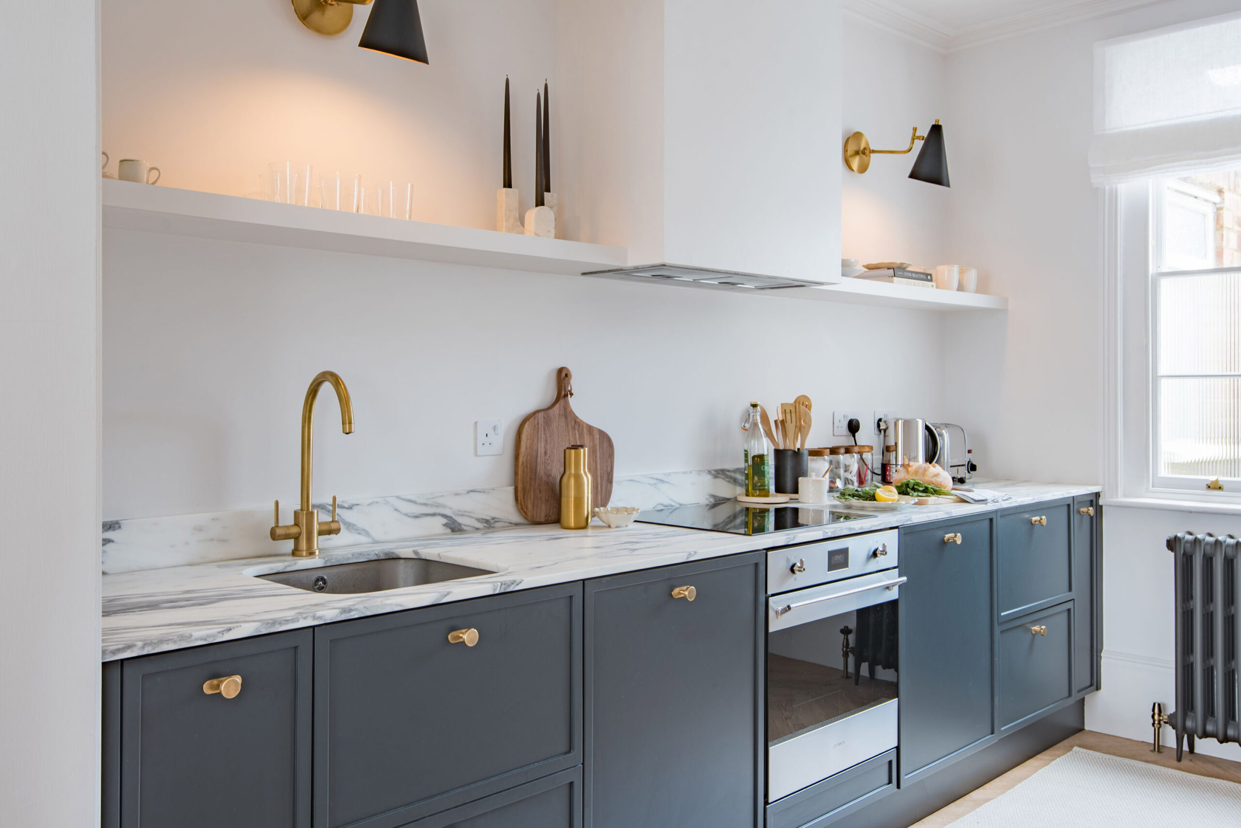 The kitchen, dining room and family bathroom are on the ground floor – the house is Grade-II listed so the owner was limited with what she could change. There’s a lounge and double bedroom on the first floor, and a further double and master are on the second floor.