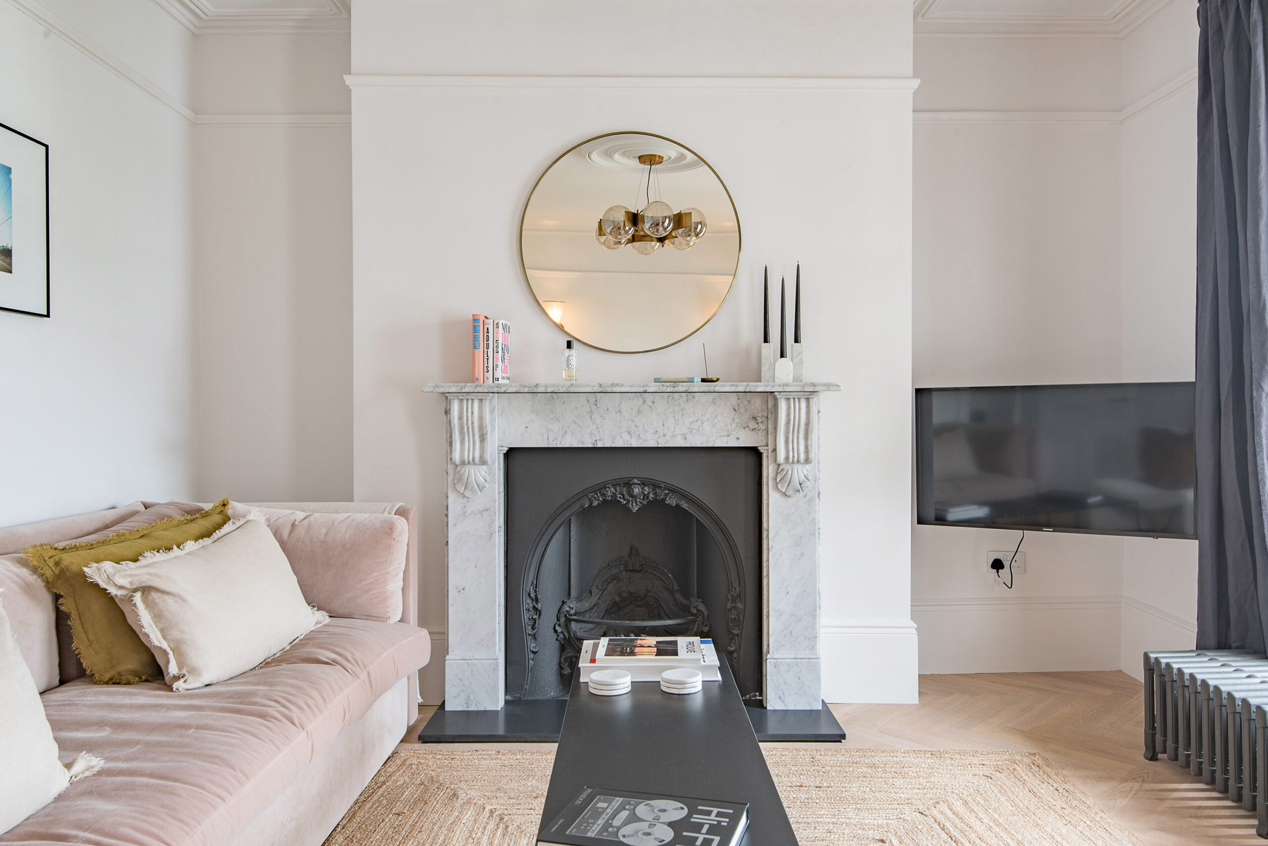 - Living room with Smart TV, books, board games and Google Nest for music and smart heating