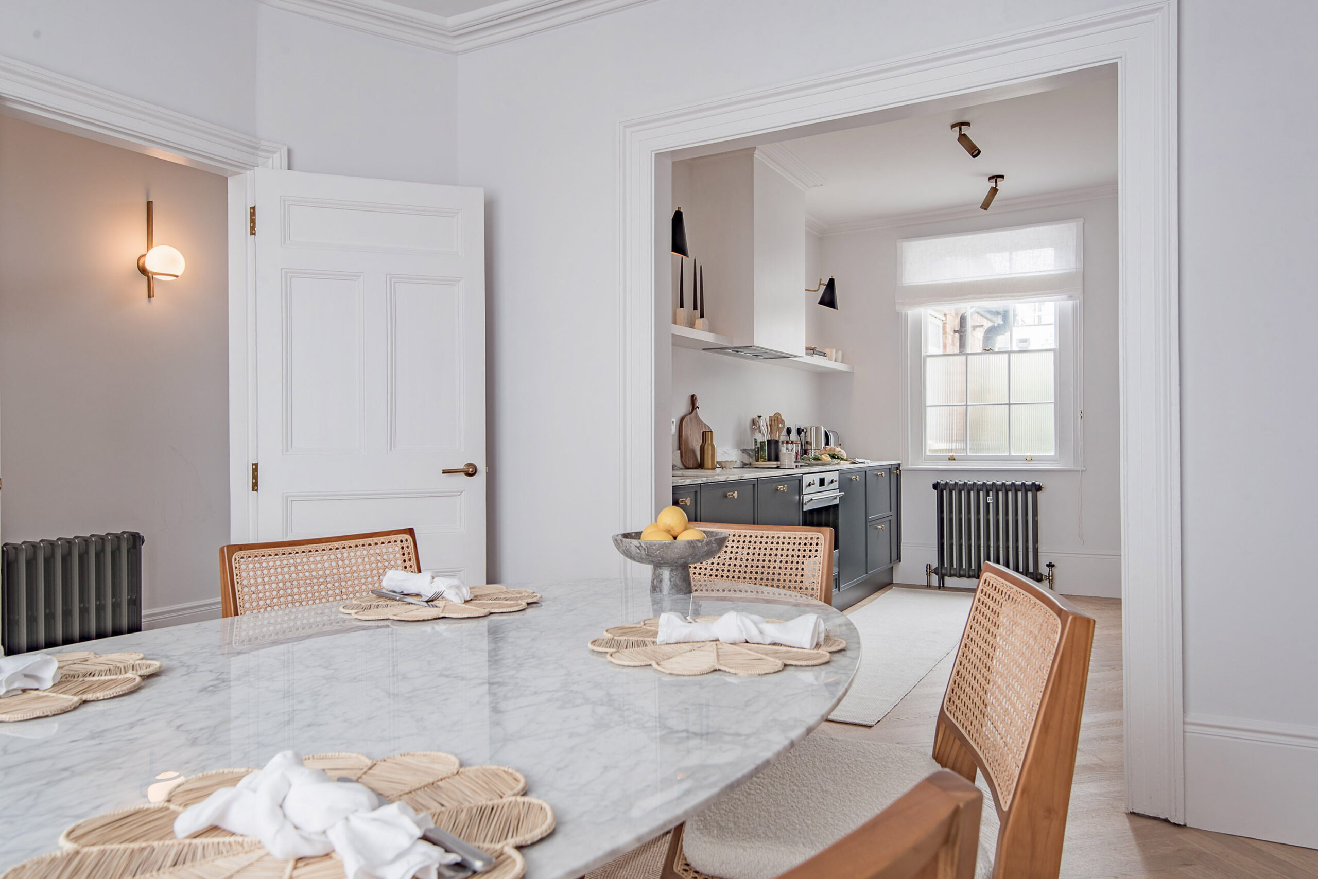 - Beautiful marble-topped kitchen, fully equipped with basics provided