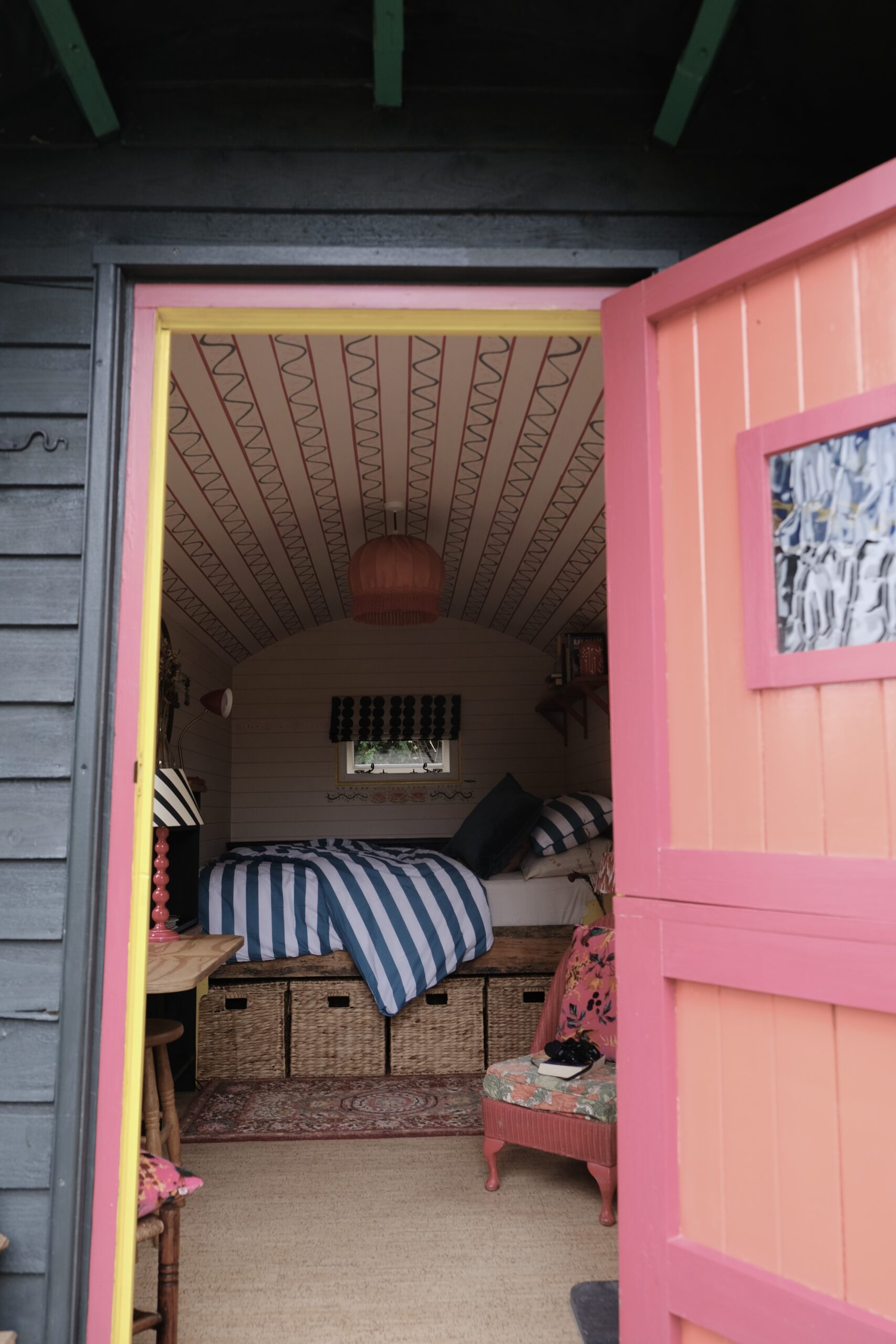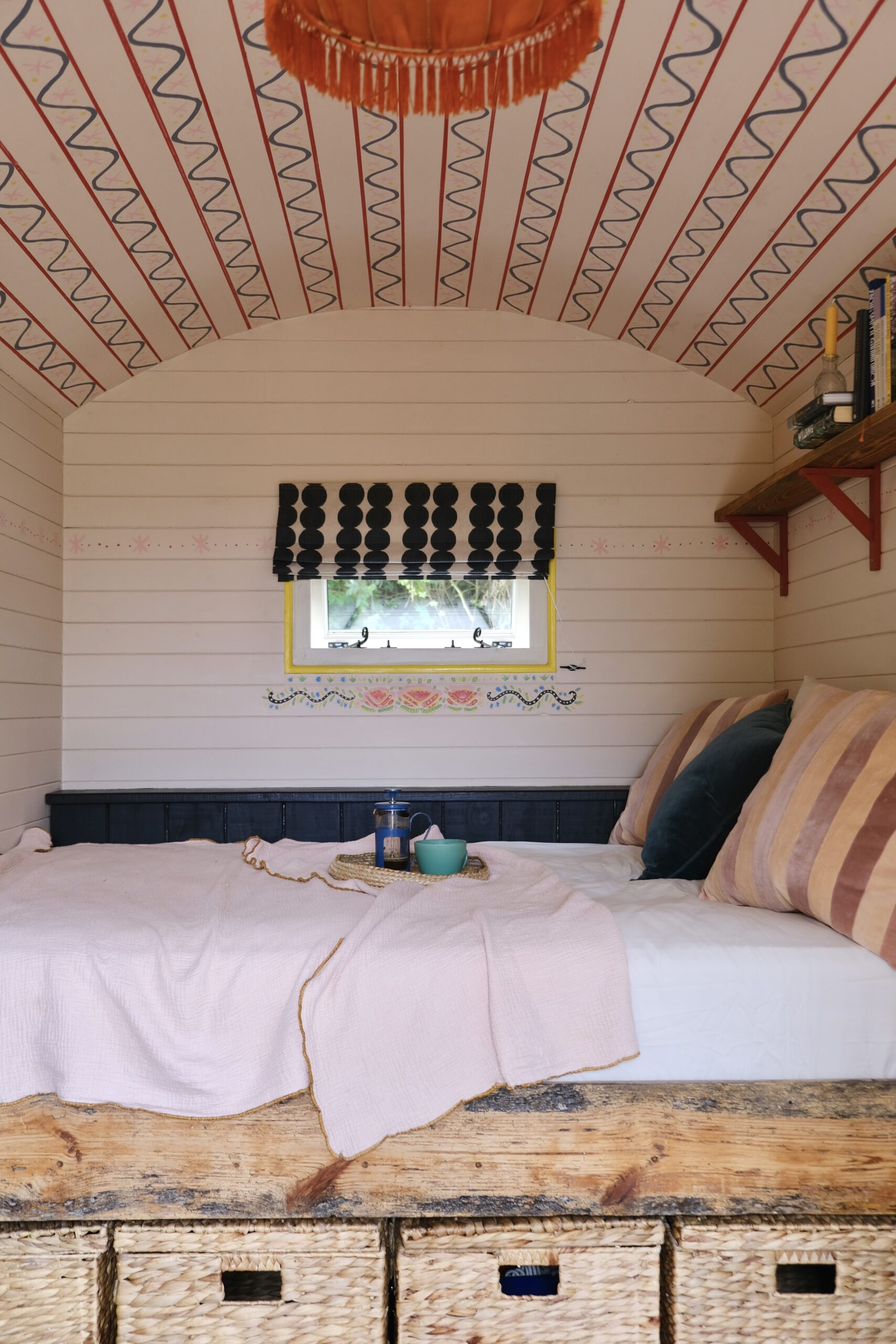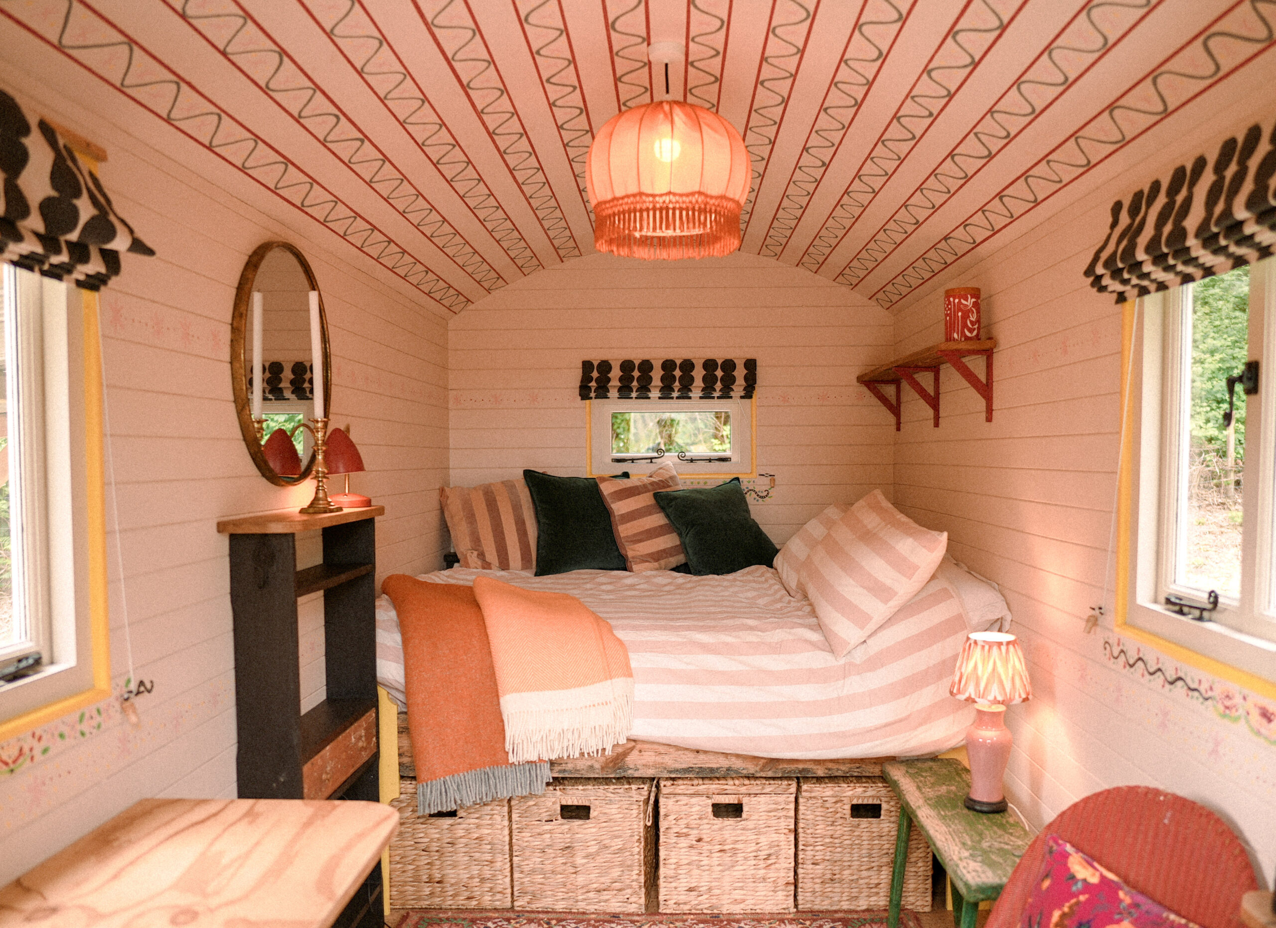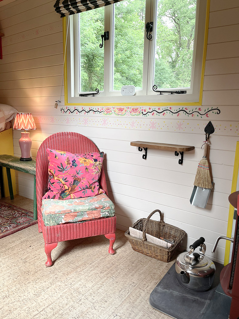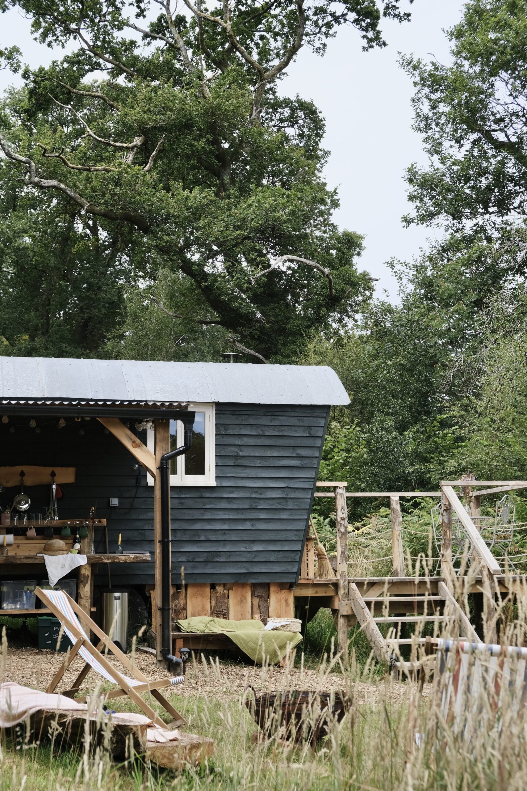 “We moved to Greenlands 10 years ago to raise our family and build up our smallholding of sheep, pigs and chickens, along with our business, Wyldlands, a small award-winning cidery. Anson and I have both have a passion for growing our own food (with a very busy poly tunnel!) and living as sustainably as possible. The cabin was purchased in lockdown – it was an abandoned project on my neighbour’s farm. Whilst buying piglets for our woods, I stumbled across it, and bought that too! There was just a roof, basic floor and 4 walls, so the entire interior and design, windows, floor, insulation, and the exterior elements to make it what it is, all had to be done. And 3 years later, here it is!” Owners, Jules and Anson