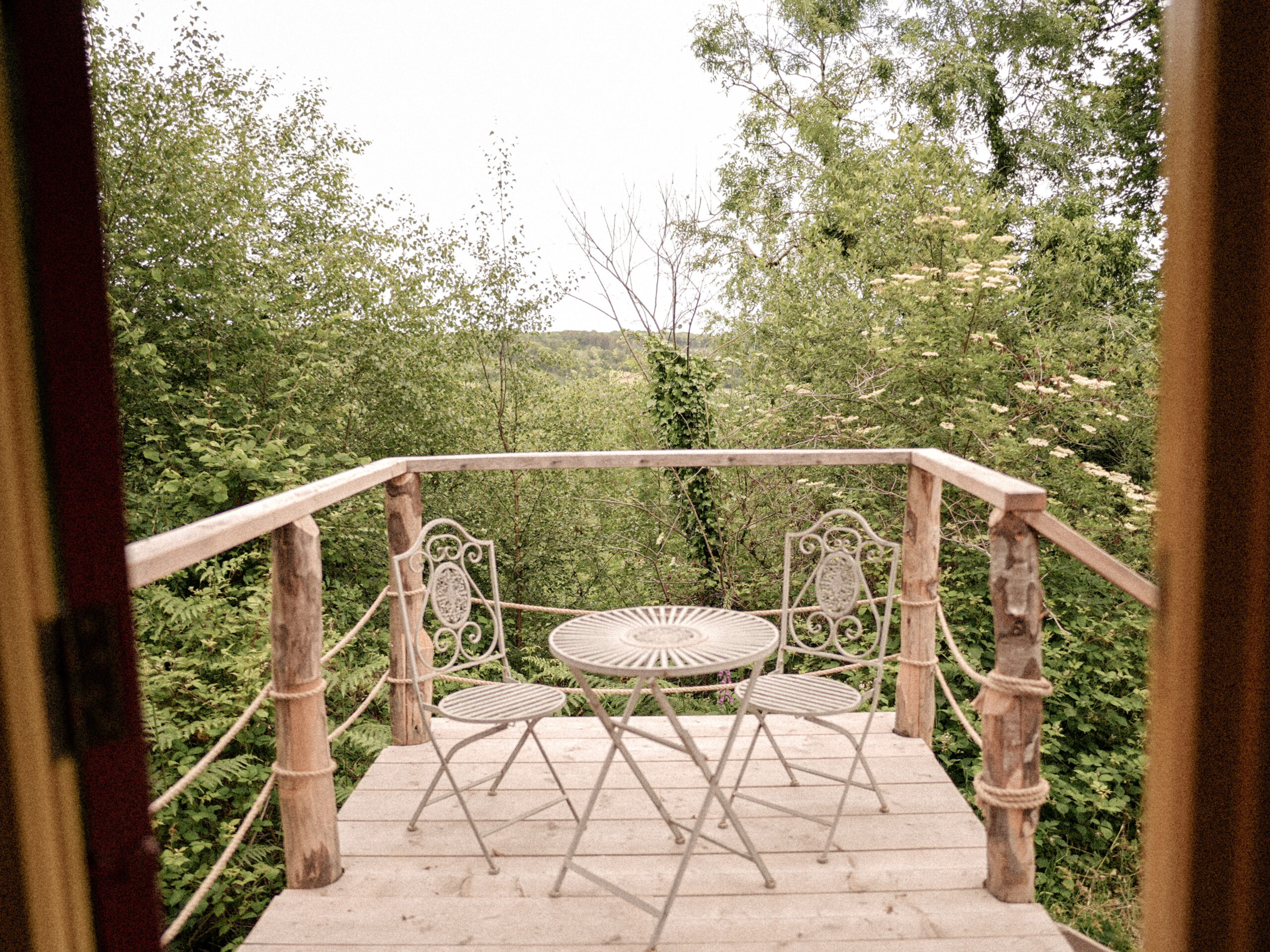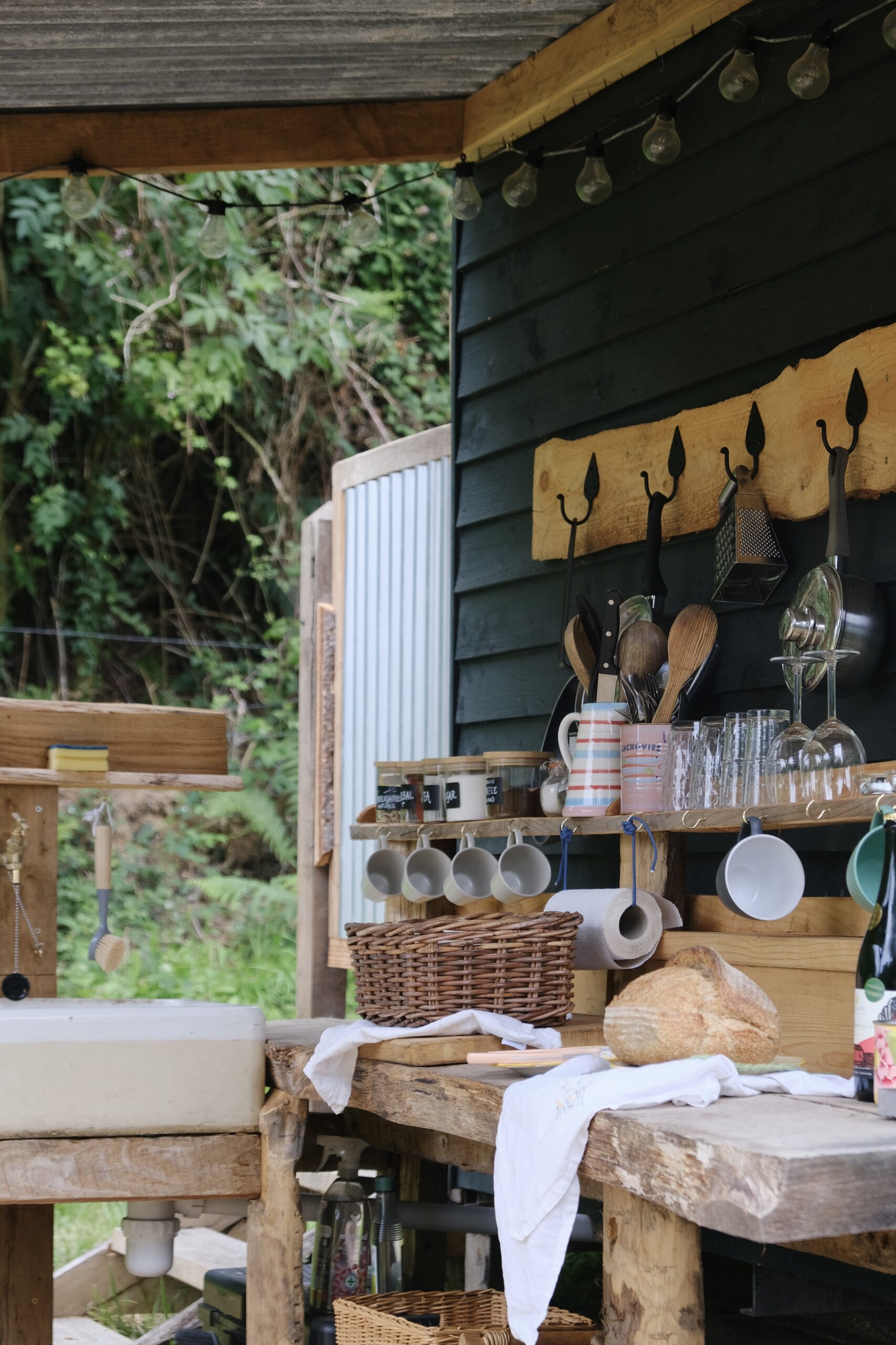 - Covered outdoor kitchen with double gas rings, cool box with ice packs, cafetiere, basic supplies and 2 stools