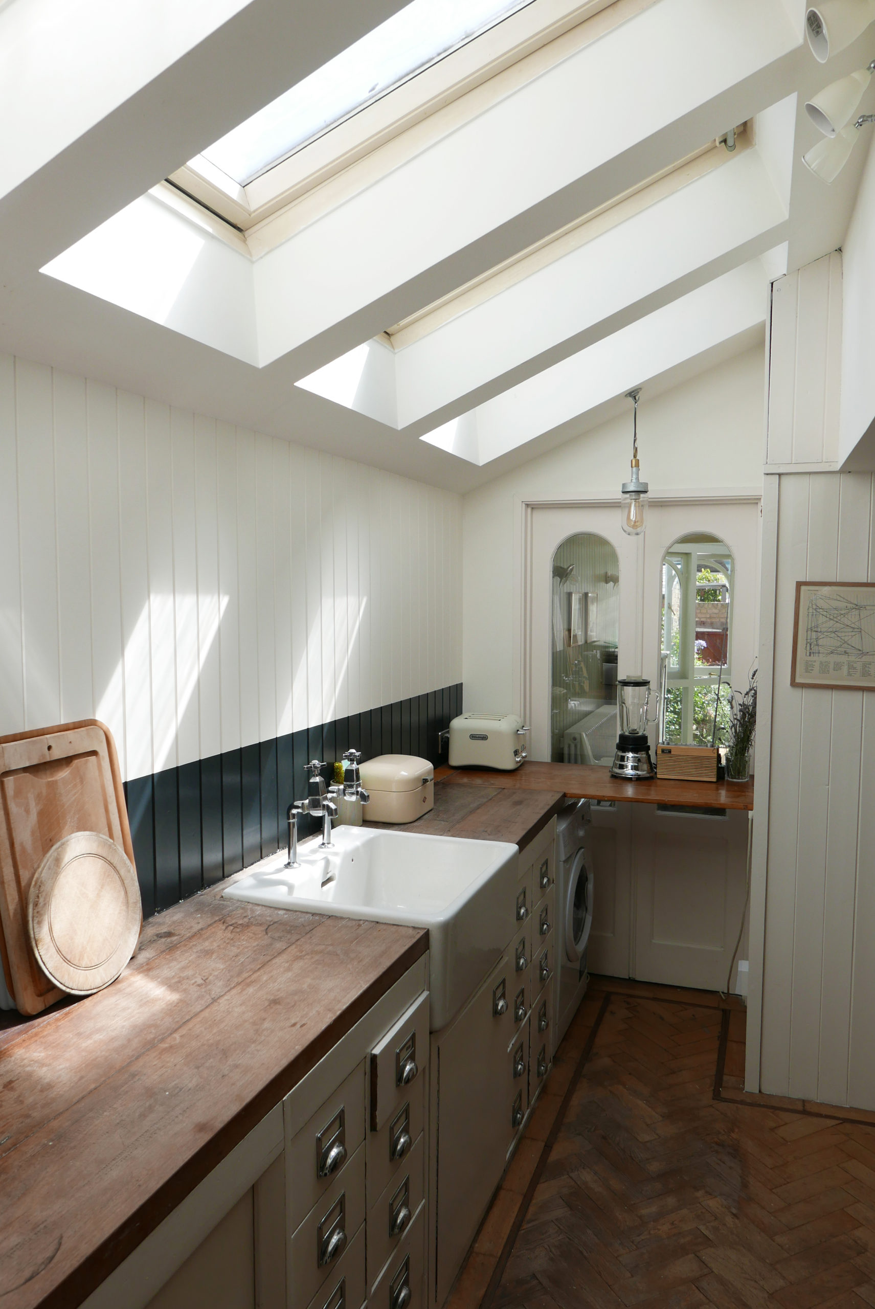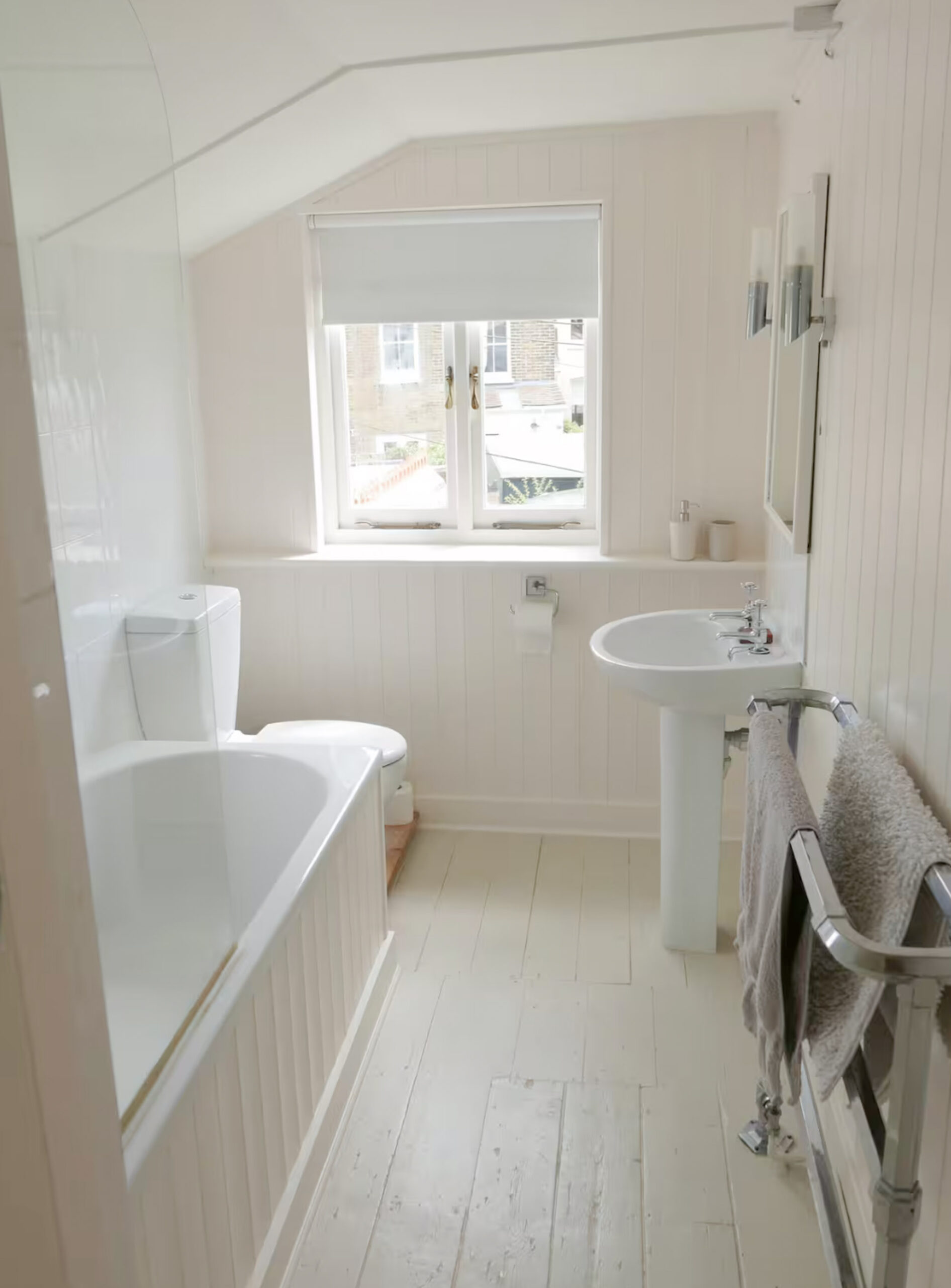 All 3 beds are doubles (no twins), one is on a mezzanine, and there’s only one bathroom, accessible through the main bedroom, so the house is best suited to a couple, a family or close friends. You can’t park directly outside, though you can hover to unload. No TV or dishwasher.