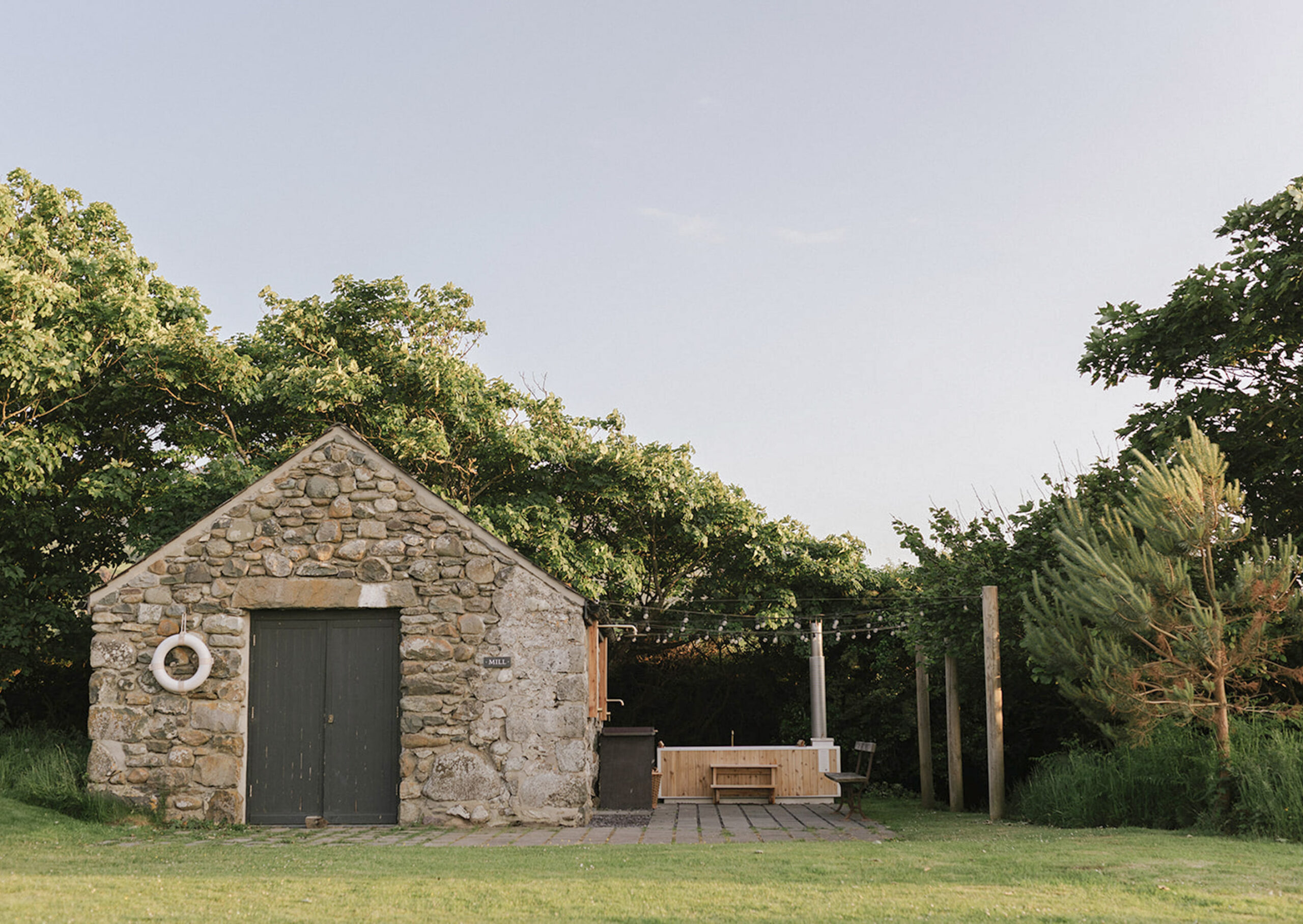 The wood-fired cedar bath by the stream. Sprinkle in fresh seaweed and relax with a great book.